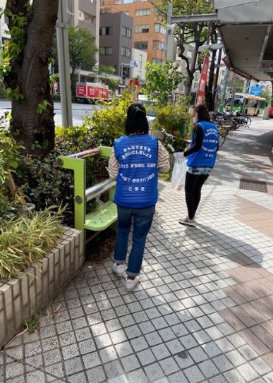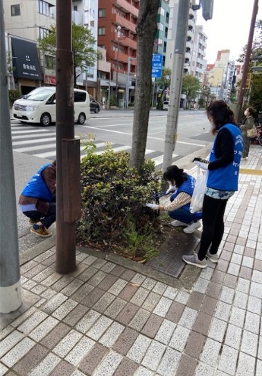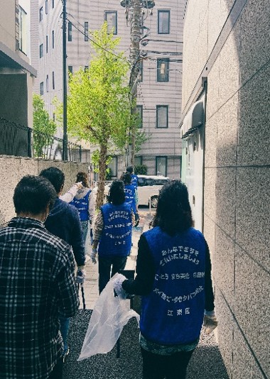 本社がある富岡2‐11から門前仲町駅までの商店街を2チームに分かれ、燃えるゴミ、燃えないゴミを回収