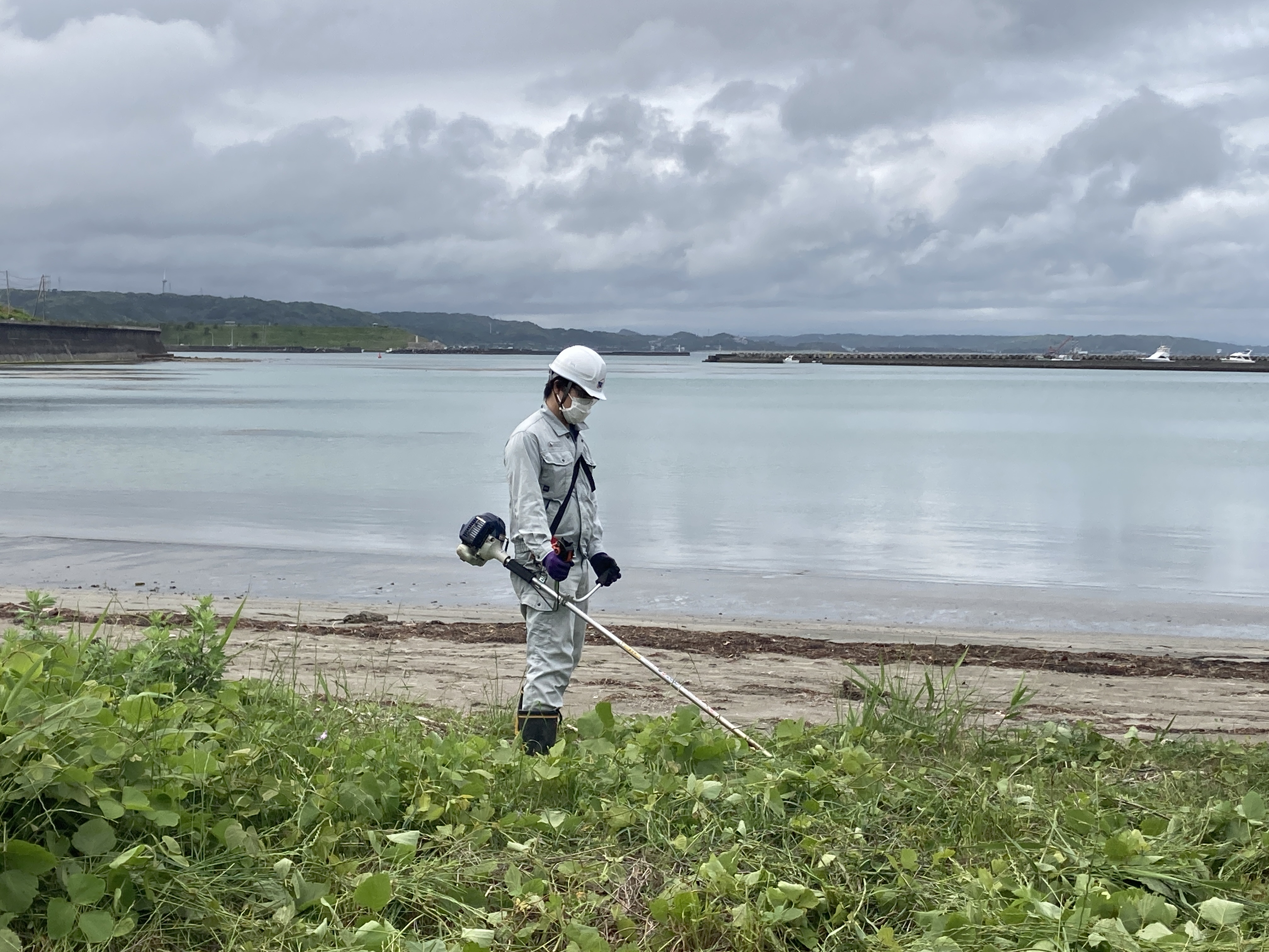 漂着ゴミや流木の回収に加え、海岸陸地の草刈りを実施!