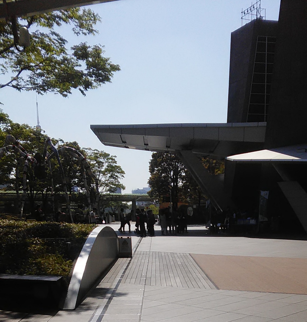 まずは、集合風景です。たくさんの人と、蜘蛛(くも)のオブジェが印象的だと思います。