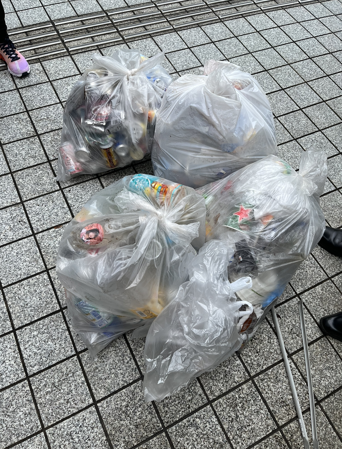 日本科学未来館で開催しているイベントもあって、通行人は多かったです。「おはようございます」の声をかけて歩いてまわりました。観光地のコンビニエンスストアの周辺は、たくさん捨てられた物が散見されました。わずか1時間で、なかなかのボリュームでした。