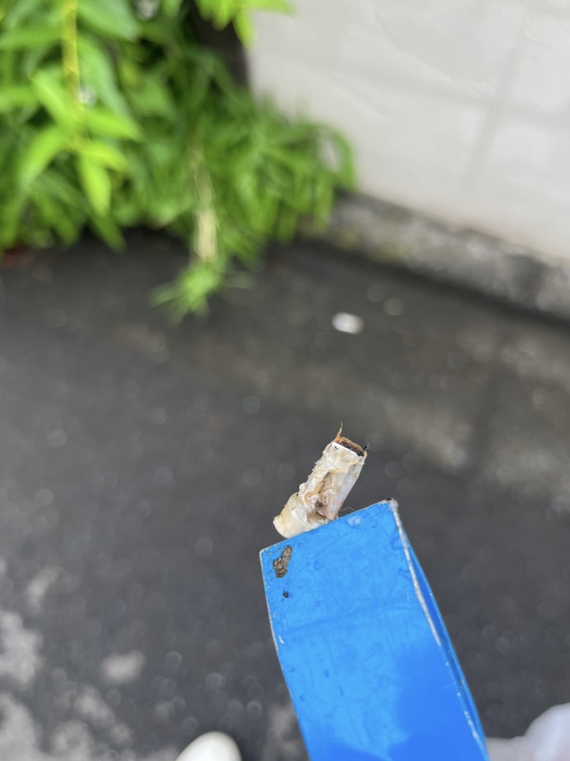 ピンセットで溝にはまった吸い殻を拾い出し。