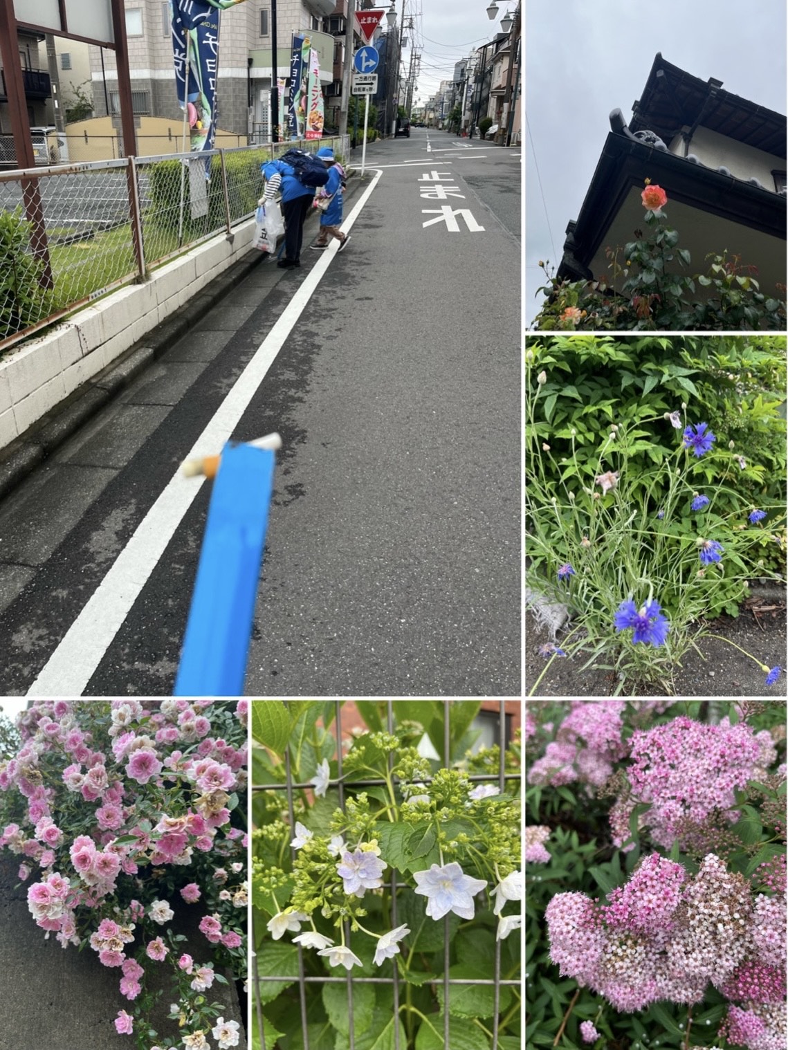 明け方までの雨もあがり涼しい朝、駅前をぐるっと回って今日は住宅街へ。