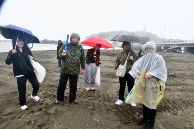 海さくらは、雨でもゴミ拾いを実施するのですが、なかなか凄い雨でした。