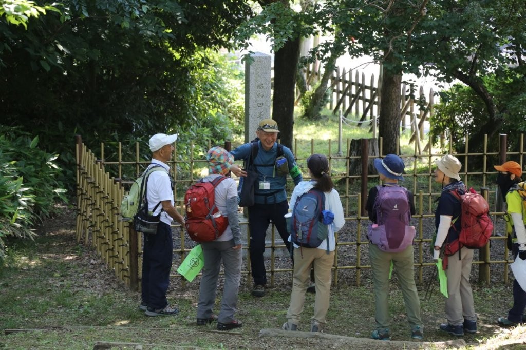 写真:ゴミ拾いの前に歴史の解説を聴きました(小仏関所跡公園で)