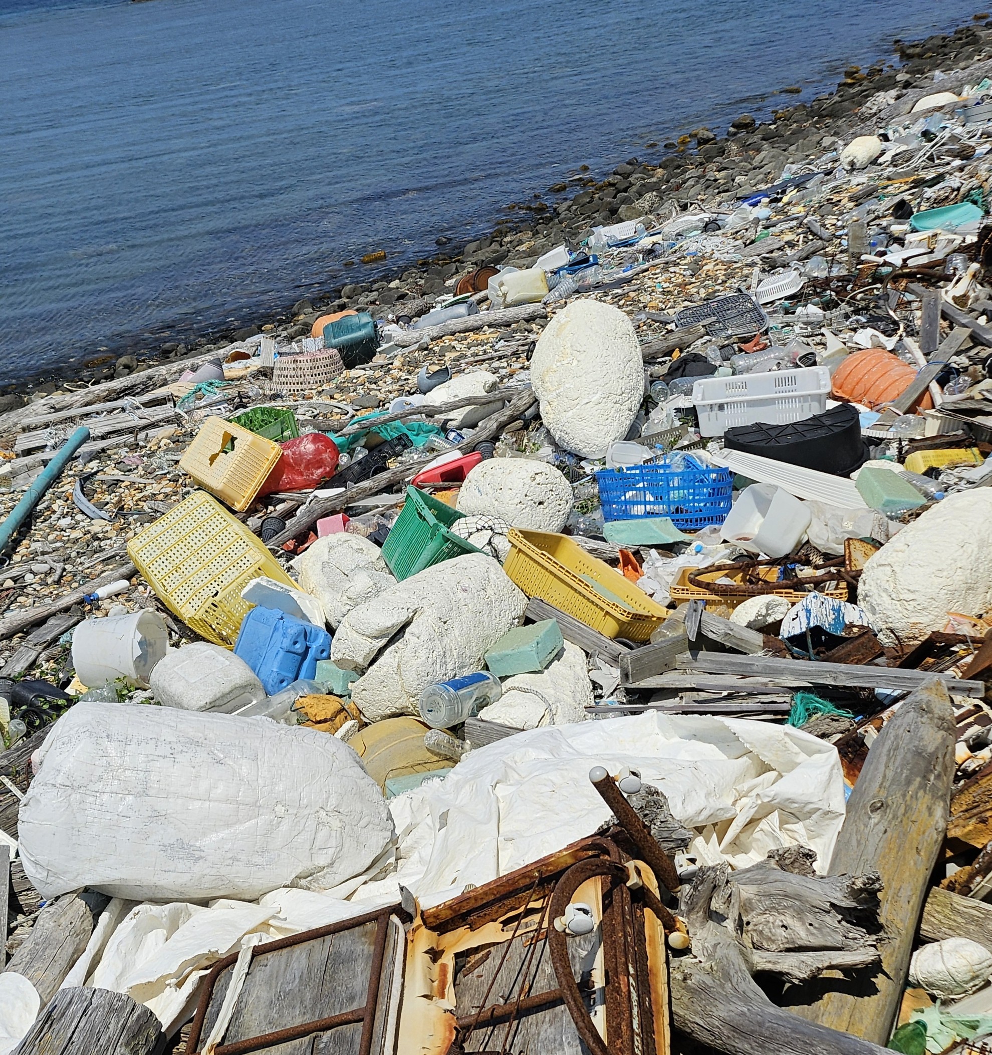 奥尻島最南端。 果てしなく続く風化された漁具類…。