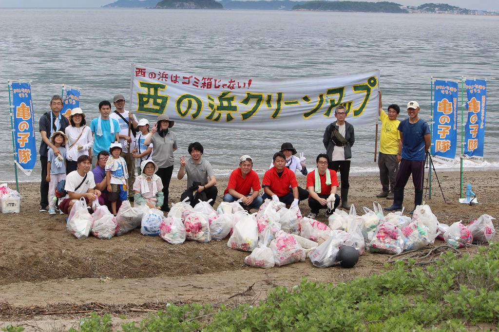 西の浜はゴミ箱じゃない!をスローガンに毎月行っている「西の浜クリーンアップ活動」通算363回目。参加者が少なく、活動範囲を広げられなかった。参加者20人、ゴミの総重量130Kg 、キャップの数323個