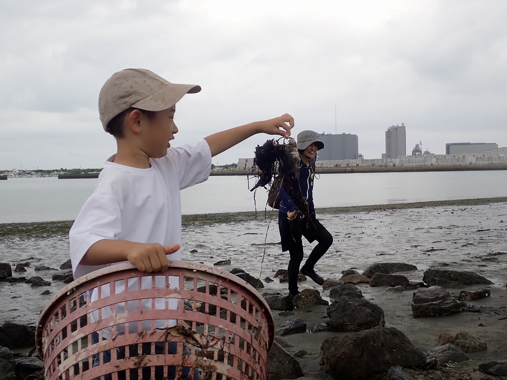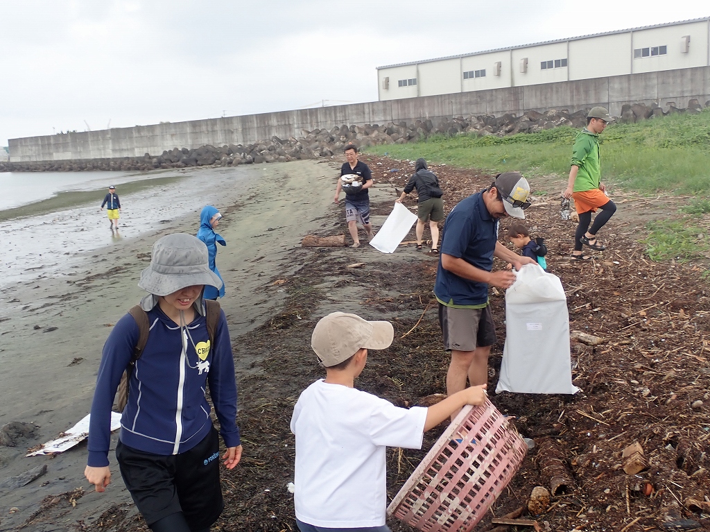 【アースキッズ 〜アマモ場の生きもの調査隊〜】の活動後半、久々生海岸の保全活動(ビーチクリーン)を実施!