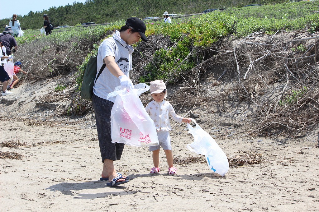 虹の浜はゴミ箱じゃない!をスローガンに毎月行っている「西の浜クリーンアップ活動」。通算364回目。粕式会社アラコさんの特別活動。快晴。気温は少し高めだが、海風が吹き暑くても気持ちよく活動できた。アラコさんは、子ども連れの参加が多くなんとなく穏やかな雰囲気。代表取締役社長 も参加。