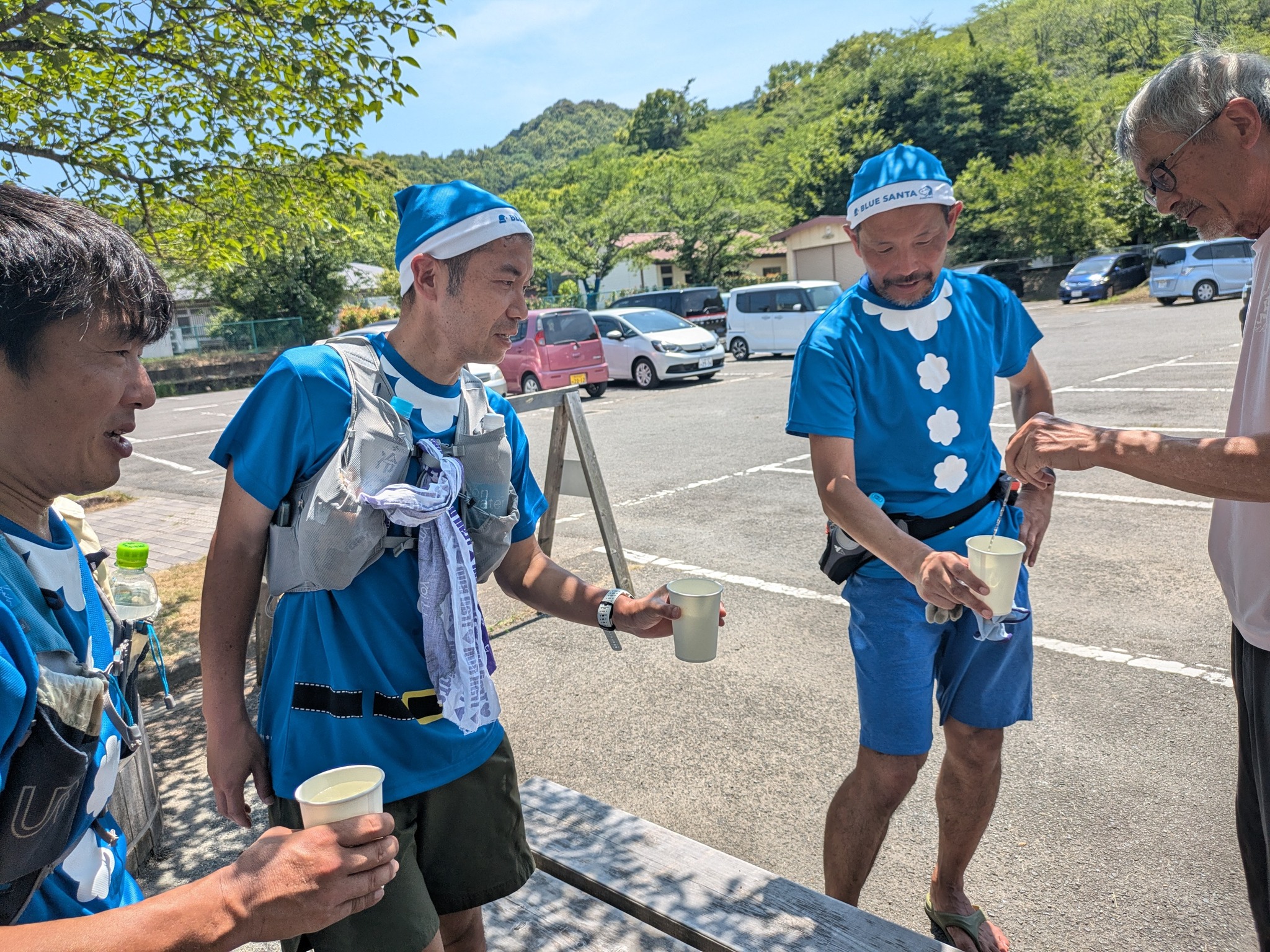 ゴール地点でエイドを設営してくれる島田さん、いつもありがとうございます!