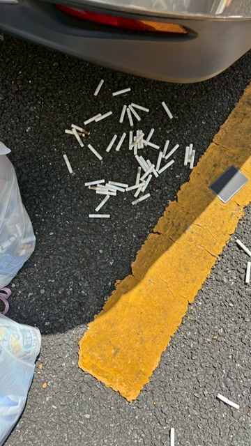 コインパーキングへ行ってみると隅には吸殻が大量にありました。