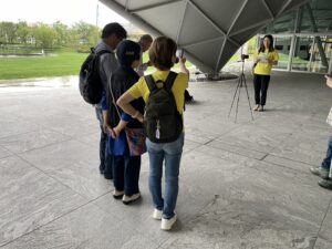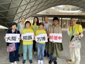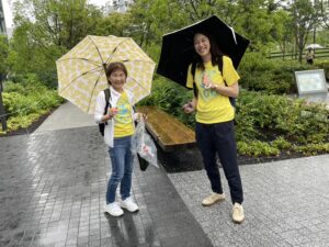 前回に引き続き、前日から雨予報だったため実施するべきか迷いましたが、今回の活動地が『大阪駅うめきたグリーンプレイス万博シャトルバス乗り場周辺』で、危険が伴う道路ではなかったので決行することに決めました。
