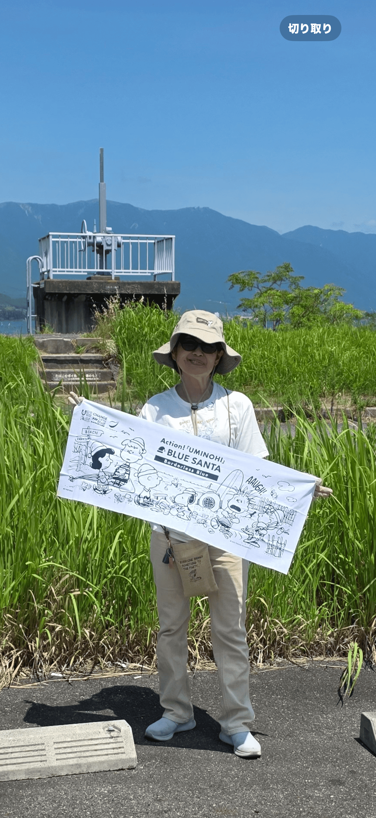 快晴の七夕 BLUE Santaになってきました。 タバコの吸殻がとても多くてビックリ 釣り場になっているようで 食べ物の空の容器も風化しているゴミがたくさんありました。 そんな中 琵琶湖天然スッポン(全長 30cmはありました)が 産卵していて 守りたい自然を感じました。 今回 お願いしたつもりのトングをもらえなかったので 次回は トングと衣装も着て 活動をしたいと思いました!! 素晴らしい機会を与えて下さり ありがとうございました。