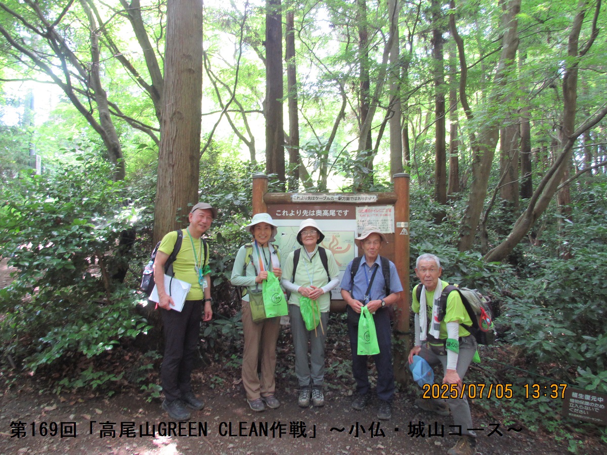 森林インストラクター東京会が社会貢献活動の一環として実施している、毎月第一土曜日に七つの異なるコースで高尾山に登って、山頂や登山道のゴミを拾いを行う活動「高尾山GREEN CLEAN作戦」第169回を7/5(土)に実施しました。