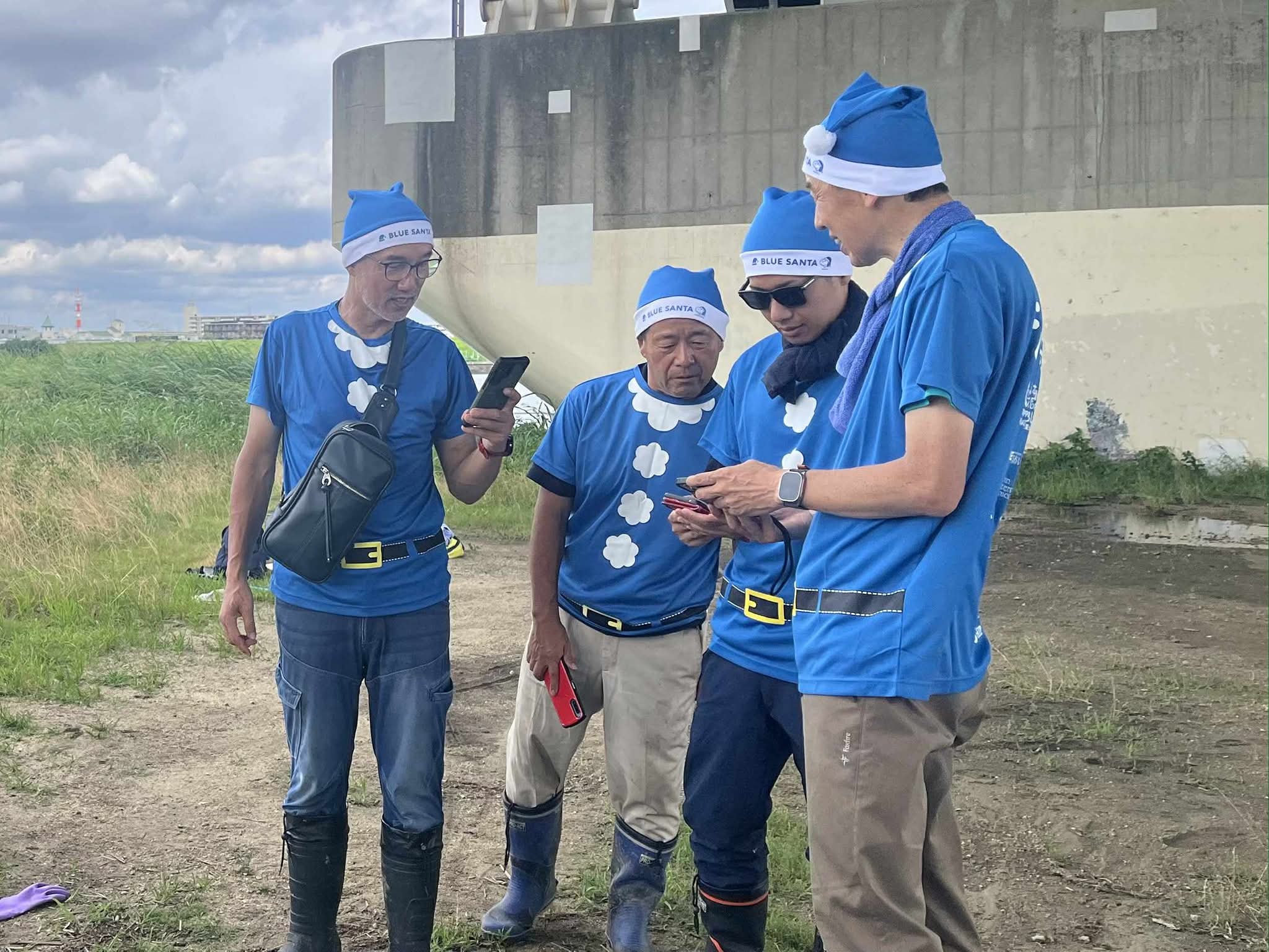 そして今回は、青いサンタクロースがごみを拾って、こどもたちに綺麗な海をプレゼントする「ブルーサンタ」としての活動です。