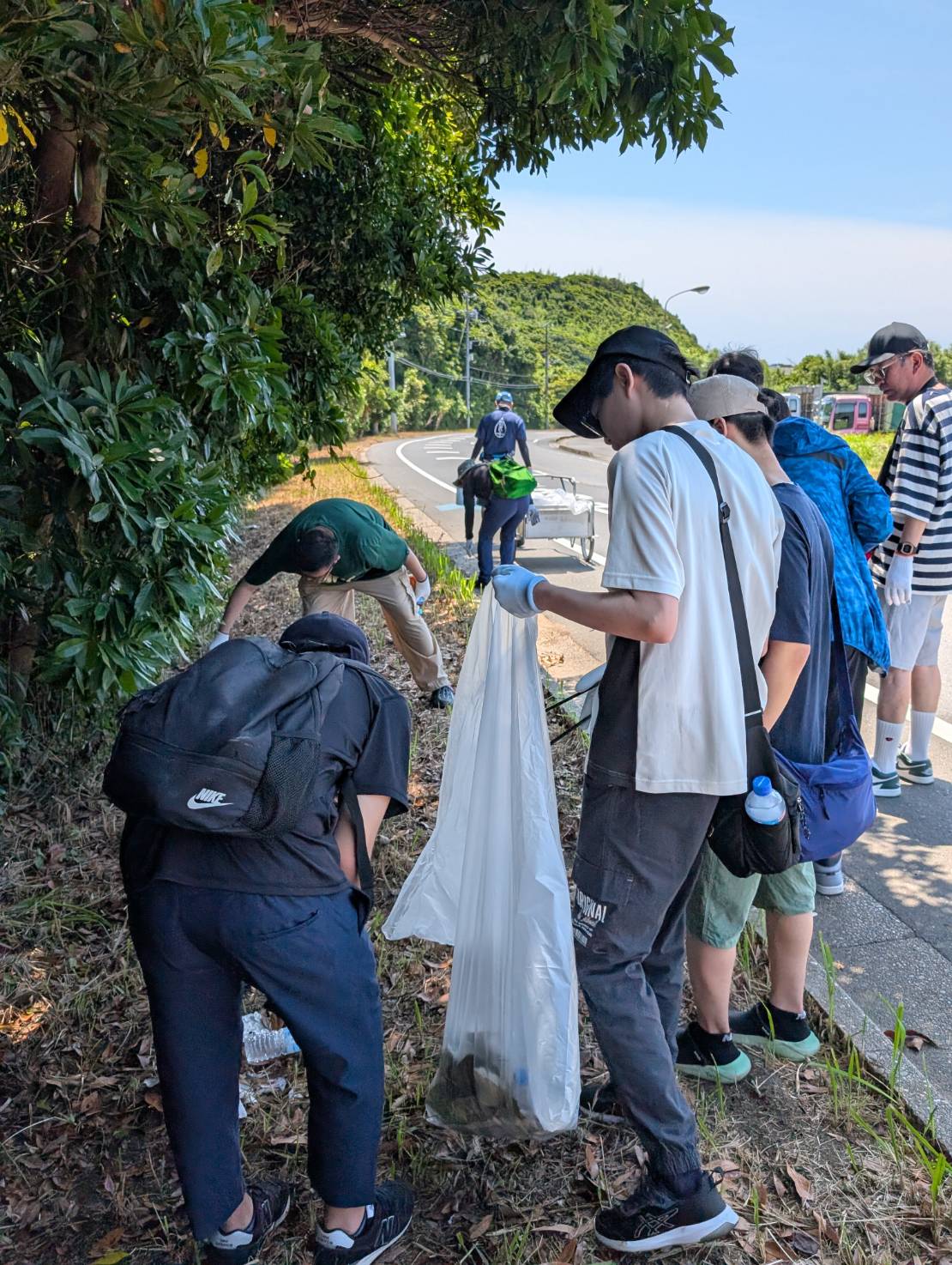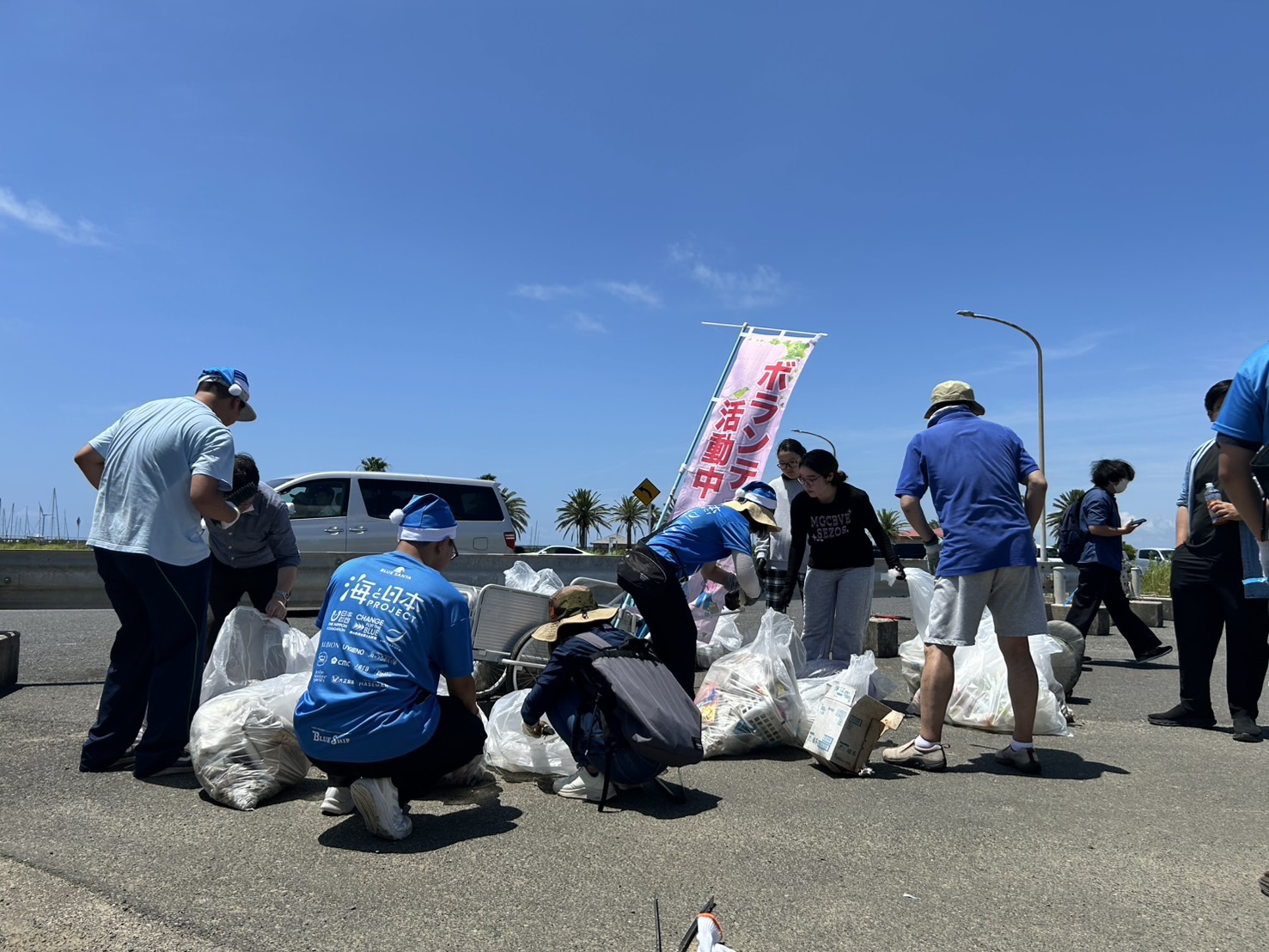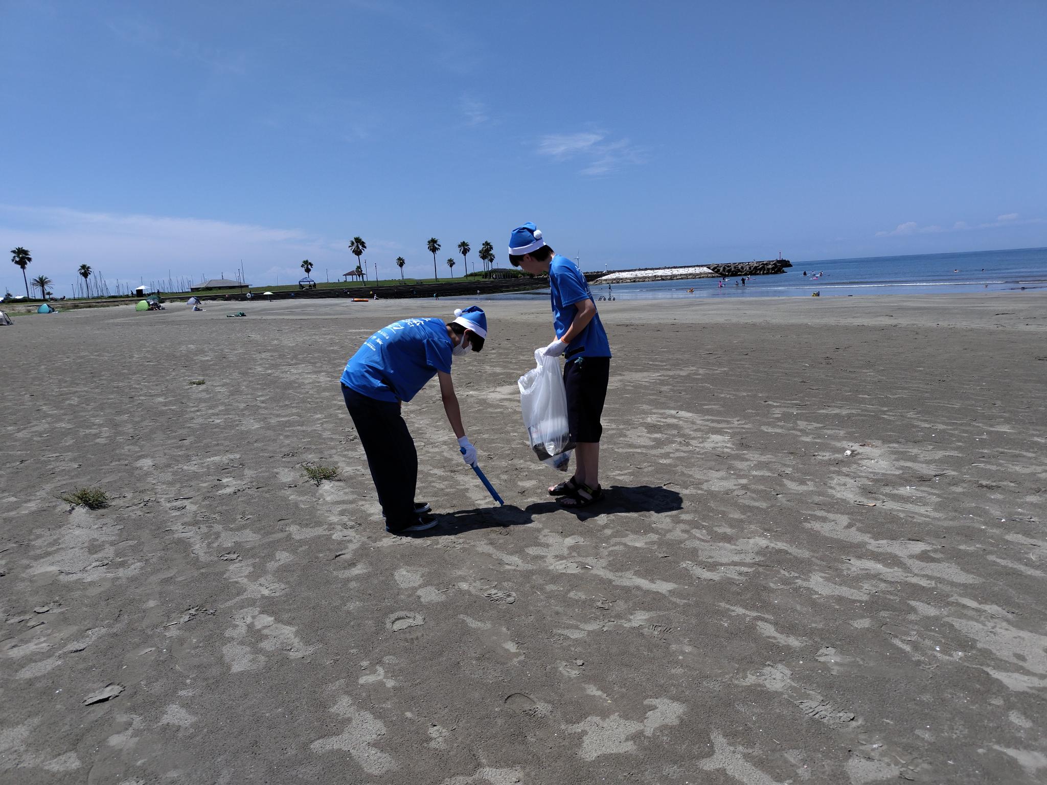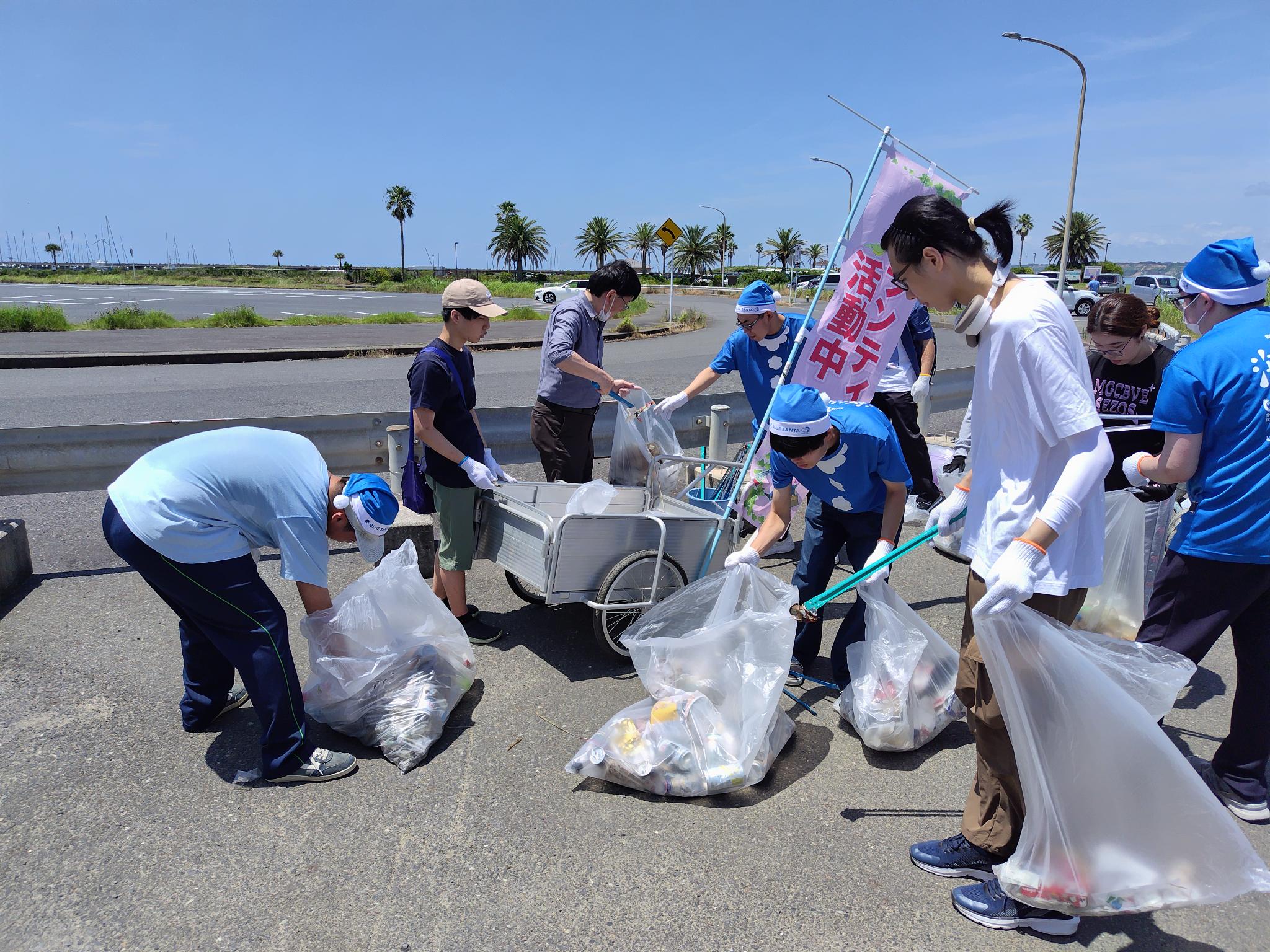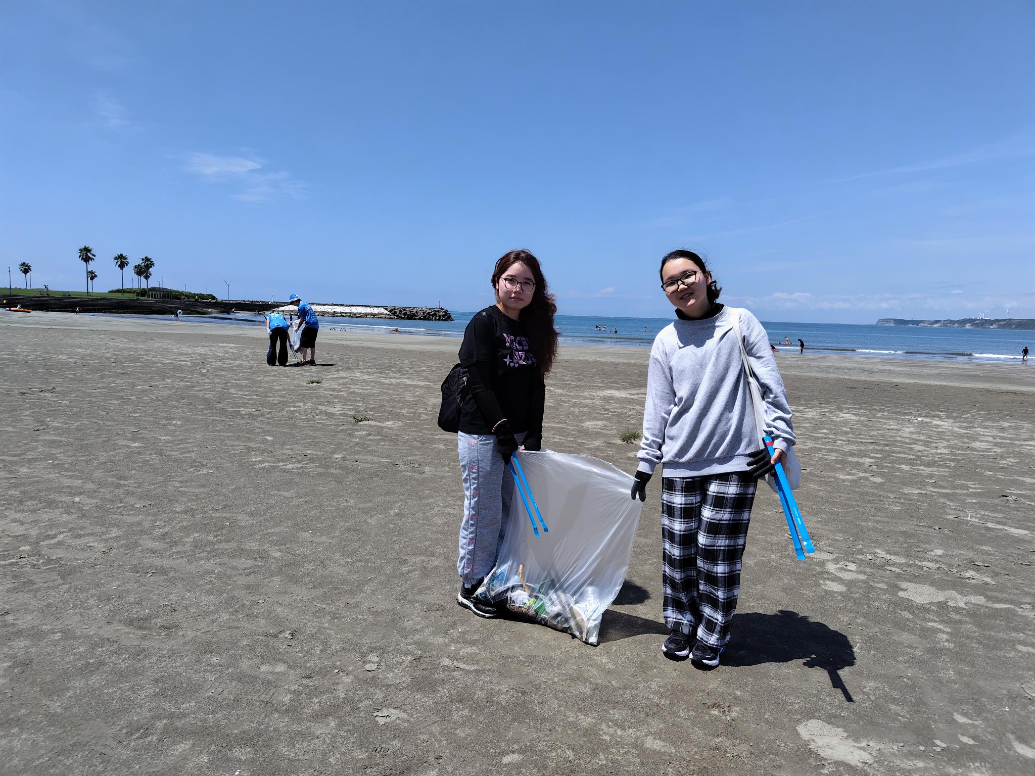 大学周辺のマリーナ海水浴場、犬岩、ドーバーライン周辺のゴミを拾いました。