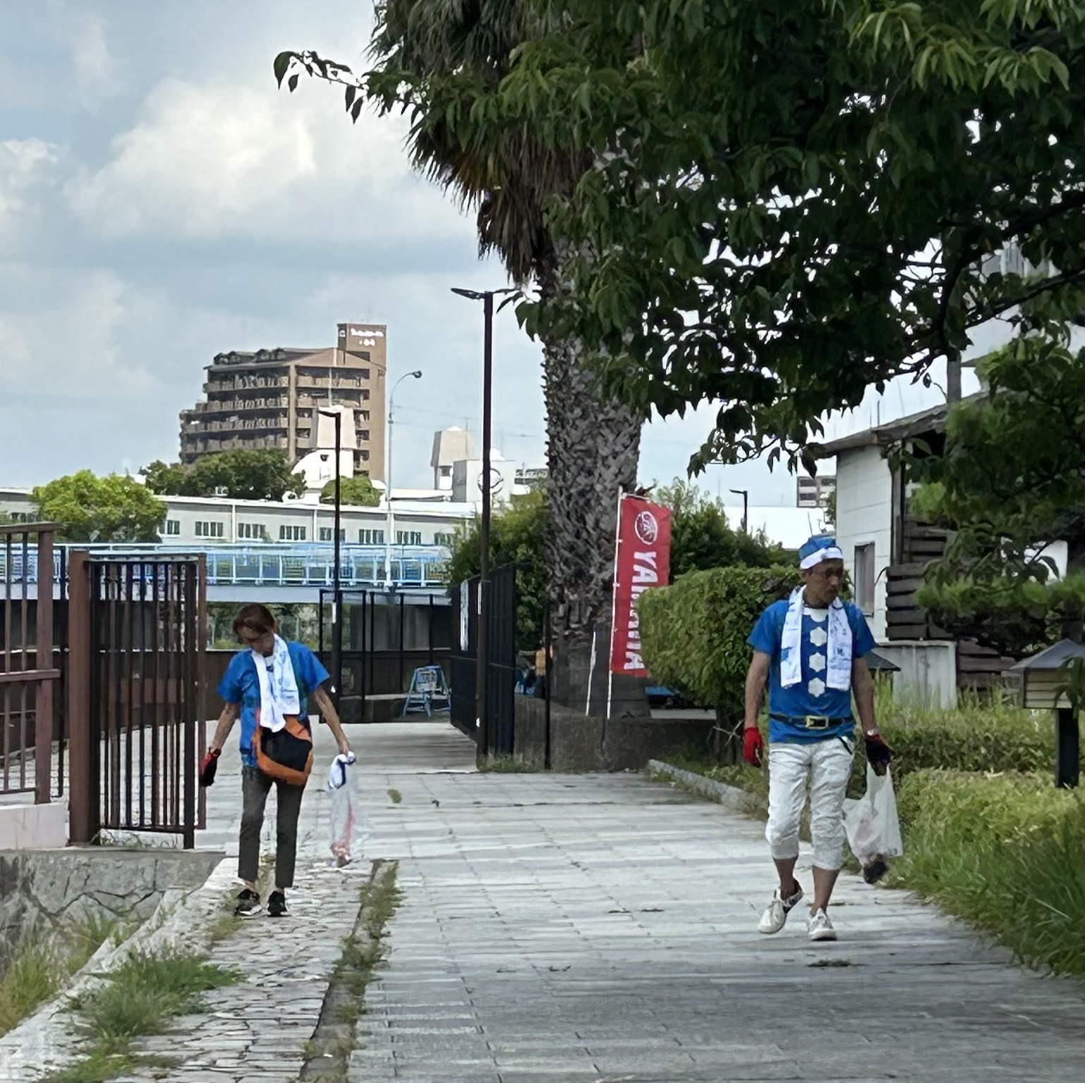 普段は海中清掃を行っていますが、「海のごみは陸上から」という想いもあるため、今回は名古屋市熱田区の『宮の渡し公園』の周辺を清掃してきました。宮の渡し公園は、江戸時代に東海道の宿駅であった熱田から桑名までの海路「七里の渡し」の船着き場があった歴史ある場所なんですよ。