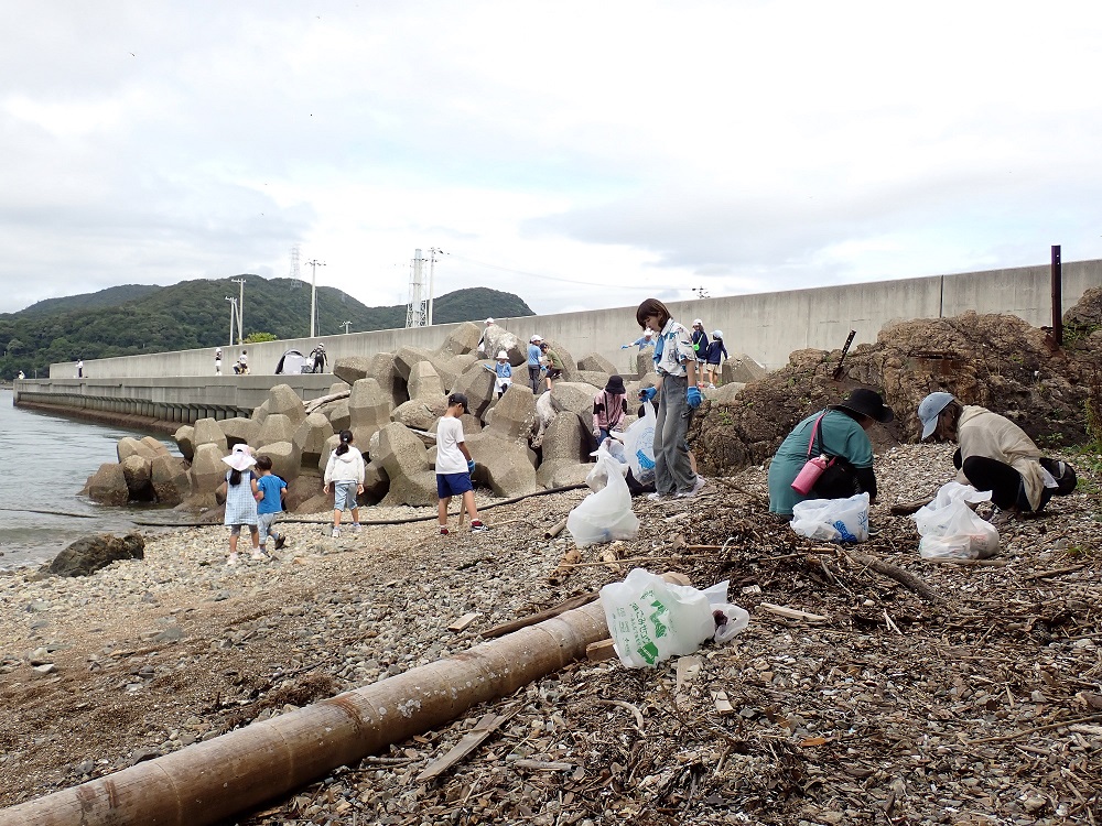 7/19に、相生市が主催する環境学習事業「あいおい里海クラブ」において、地元小学生のクラブ員たちと民間団体、支援企業様と一緒に、鰯浜海岸の清掃を行いました。