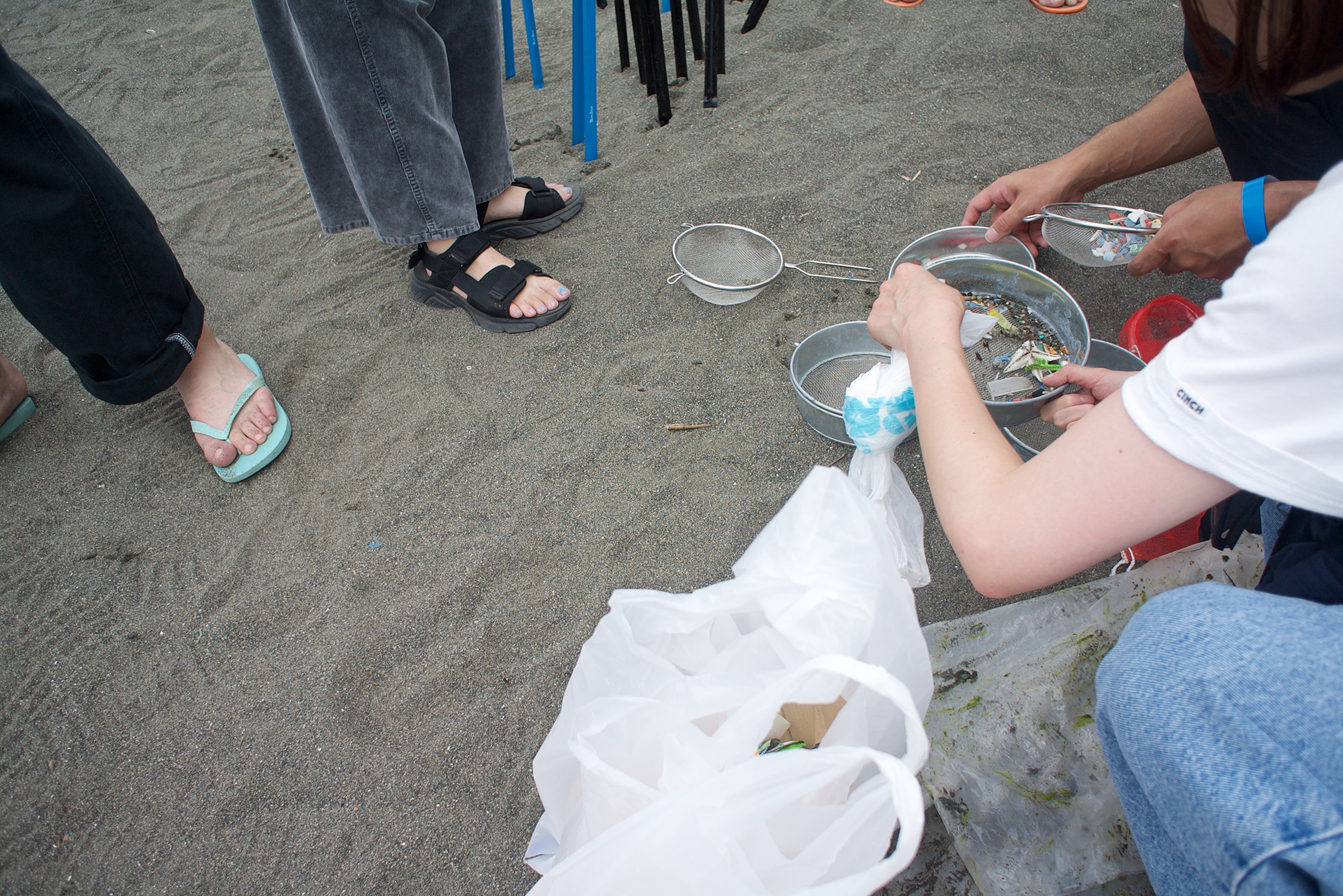 今回は大きなゴミは少なかったものの、燃えるゴミ6袋、不燃ゴミ5袋を回収。また、イベントやワークショップに活用するため、マイクロプラスチックもざる一杯分を集めることができました。小さなゴミにもしっかりと目を向けてくださった参加者の皆さまのご協力に感謝いたします。SHIPSでは、回収されたペットボトルなどを資源として再利用する「Green & Blue Challenge」にも参加しています。
