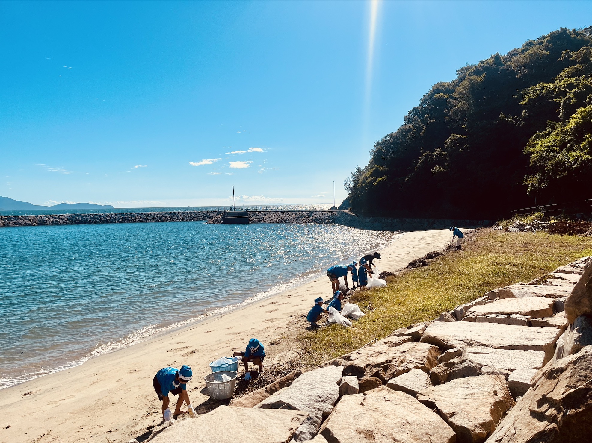 今年の浜辺はわかめがとても多くこの日もわかめの除去を行う予定でしたが、この日はわかめが少なく沖から流れ着いた細かい木の枝が大量にあったためそちらの掃除を行いました。