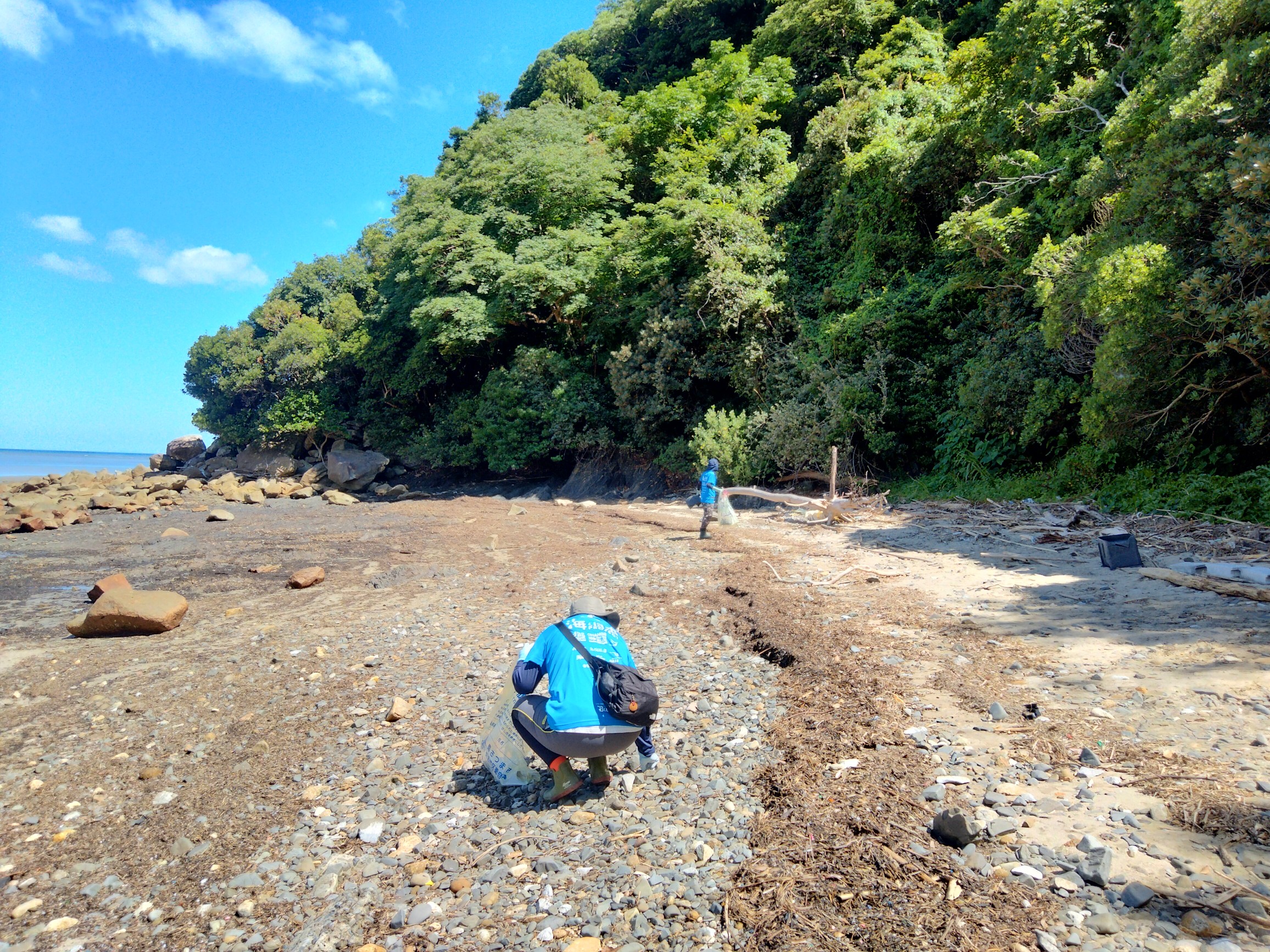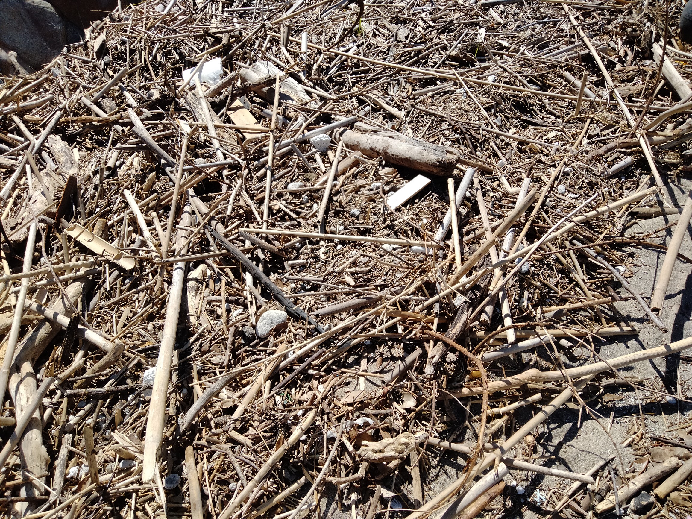 今回もあまり大きなごみは落ちておらず、漂着した枝や葉っぱに紛れ込むフィルム状のプラスチックを拾ったりする時間が長かったです。