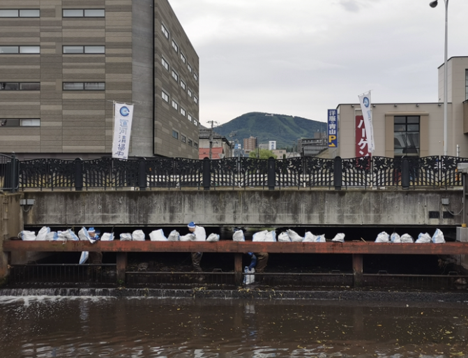 1週間お休みしたせいか、河口のゴミは21袋にもなりました。小樽の大きいお祭り「おたる潮まつり」が前日に始まったこともあるかもしれません。