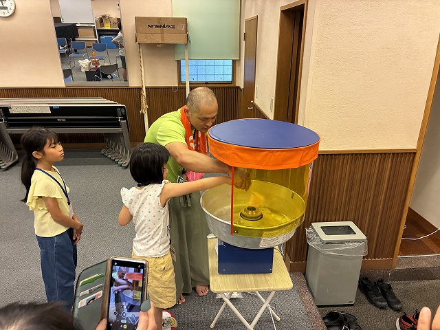最後に子ども達には綿菓子づくり体験を隊長のご厚意でやってもらいました。隊長、ありがとうございました。次回のろっぽんぎ寺子屋チームの活動は秋に予定しています。