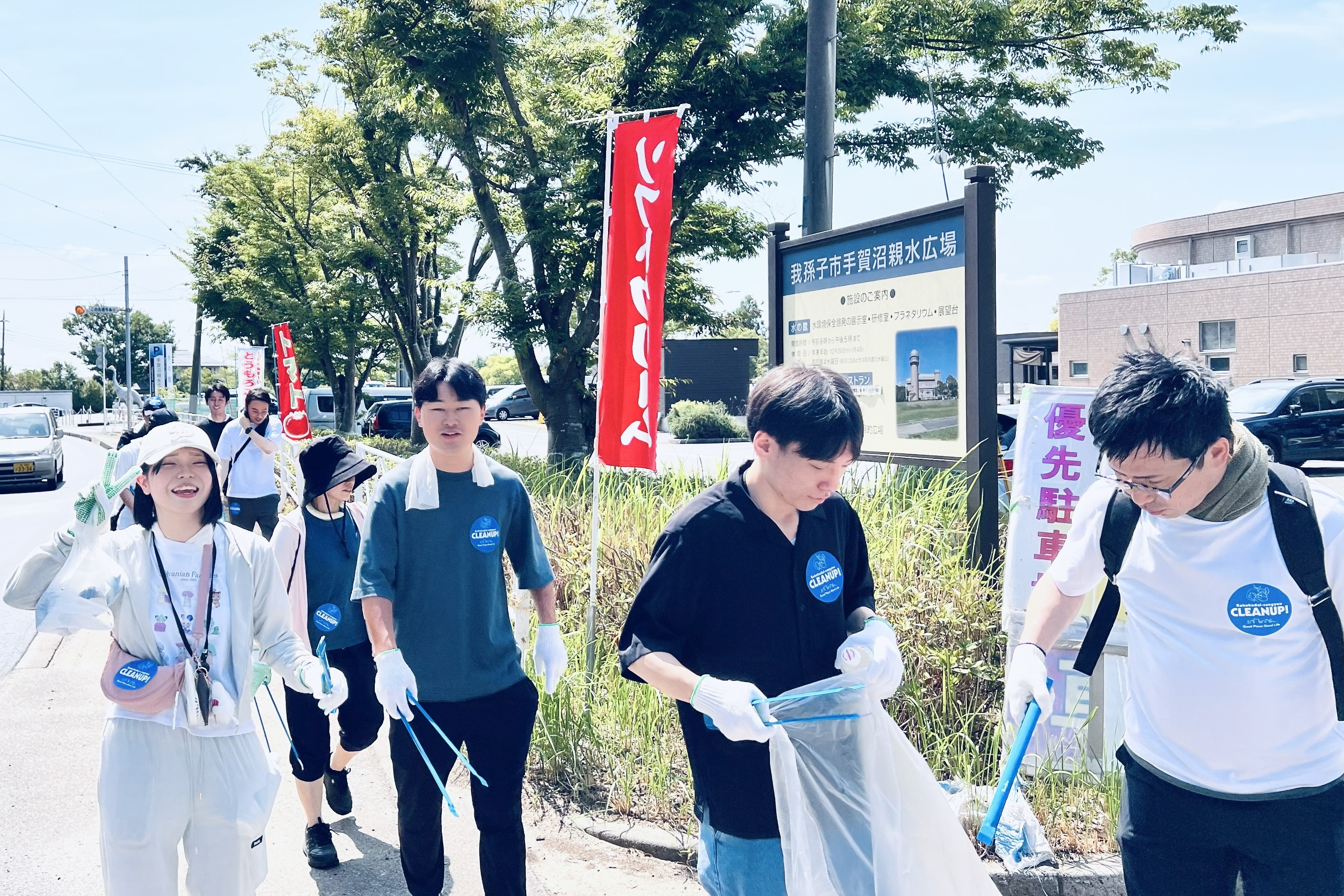 熱中症予防ドリンクとともにゴミ拾いスタート![]()