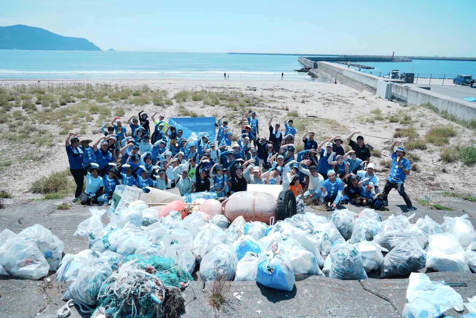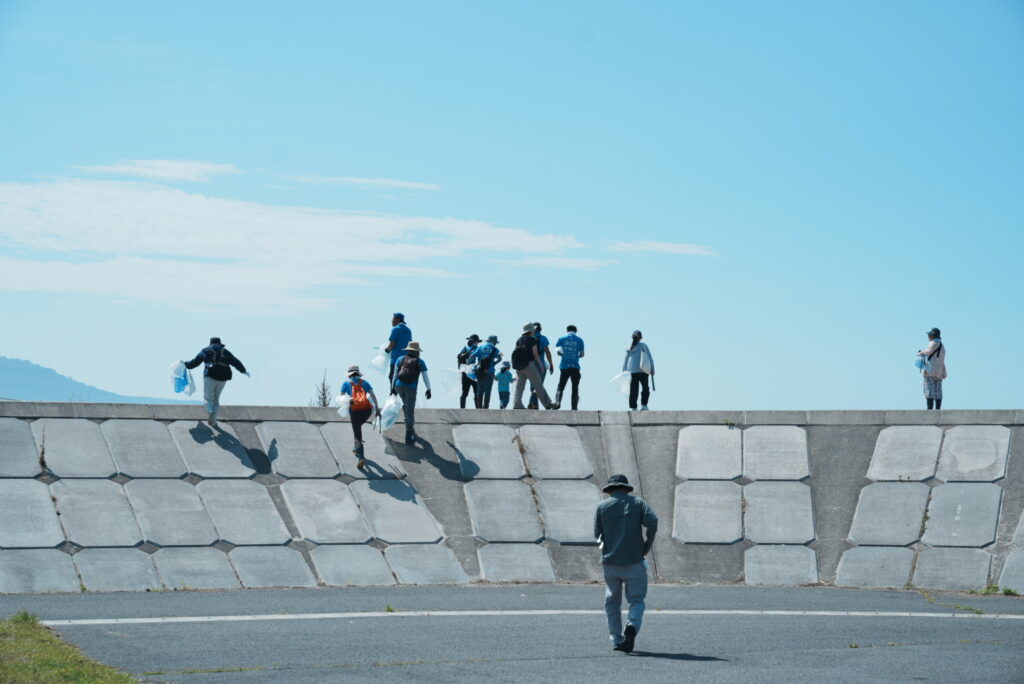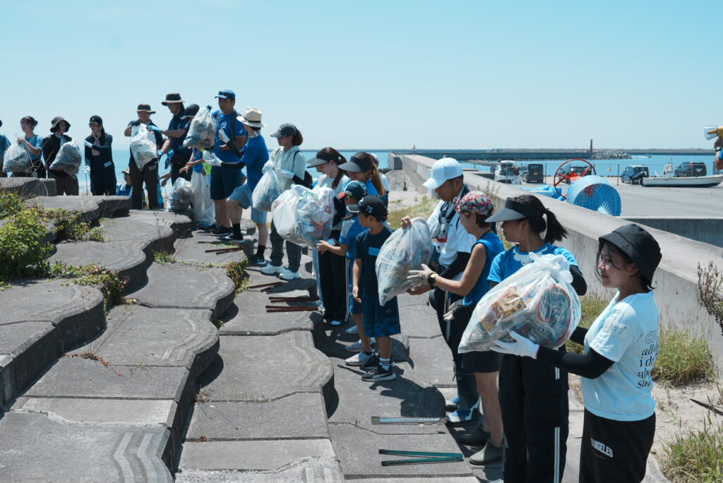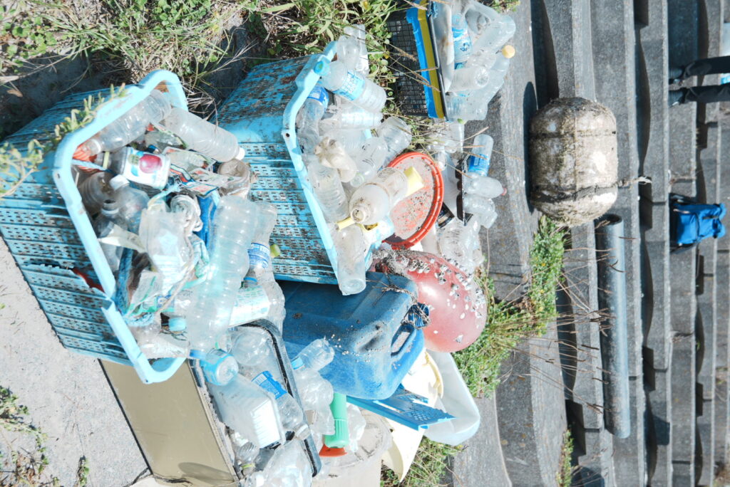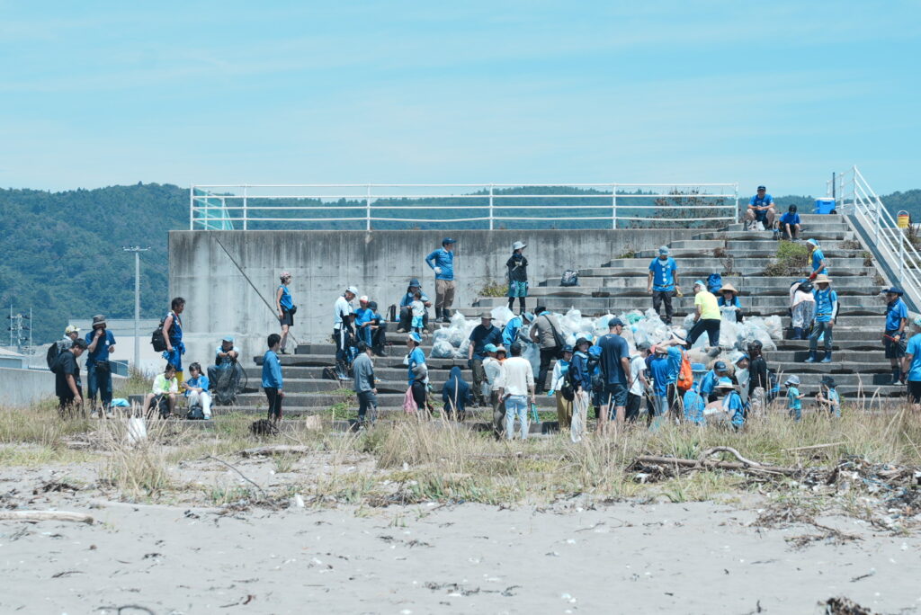 あっというまにラストスパートへ突入!!海岸の端の階段地帯でごみをいったん集積し、分別の確認作業やごみ袋をまとめる作業に入ります!!
