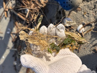 それが本当にわかるほど、たくさんのビニール類が、ワカメや草などに絡んで砂浜全体に広がっていました。