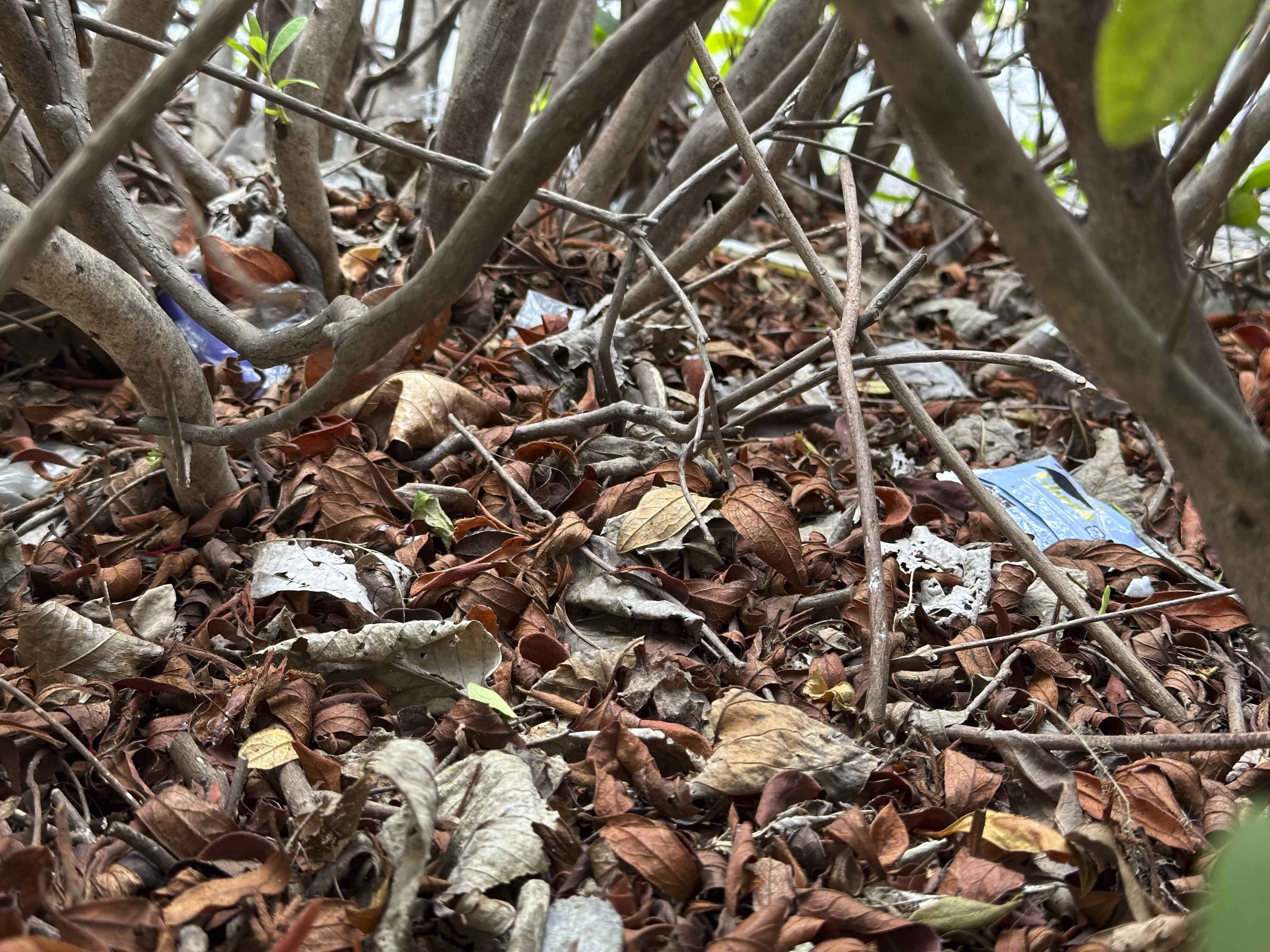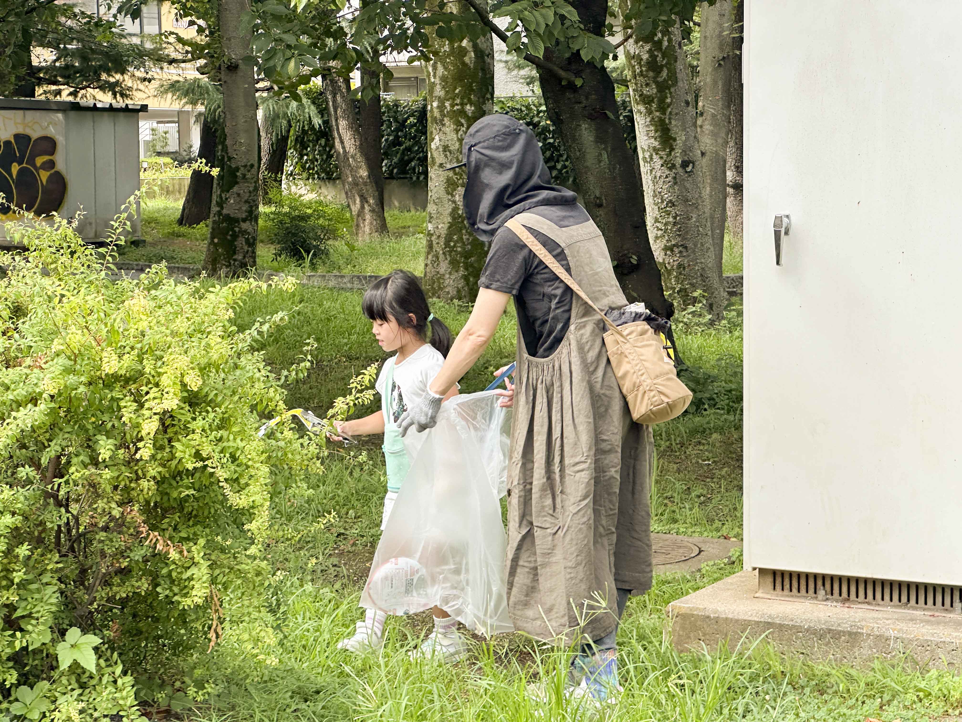 緑道の植え込みの中には細かいゴミがたくさん、、、