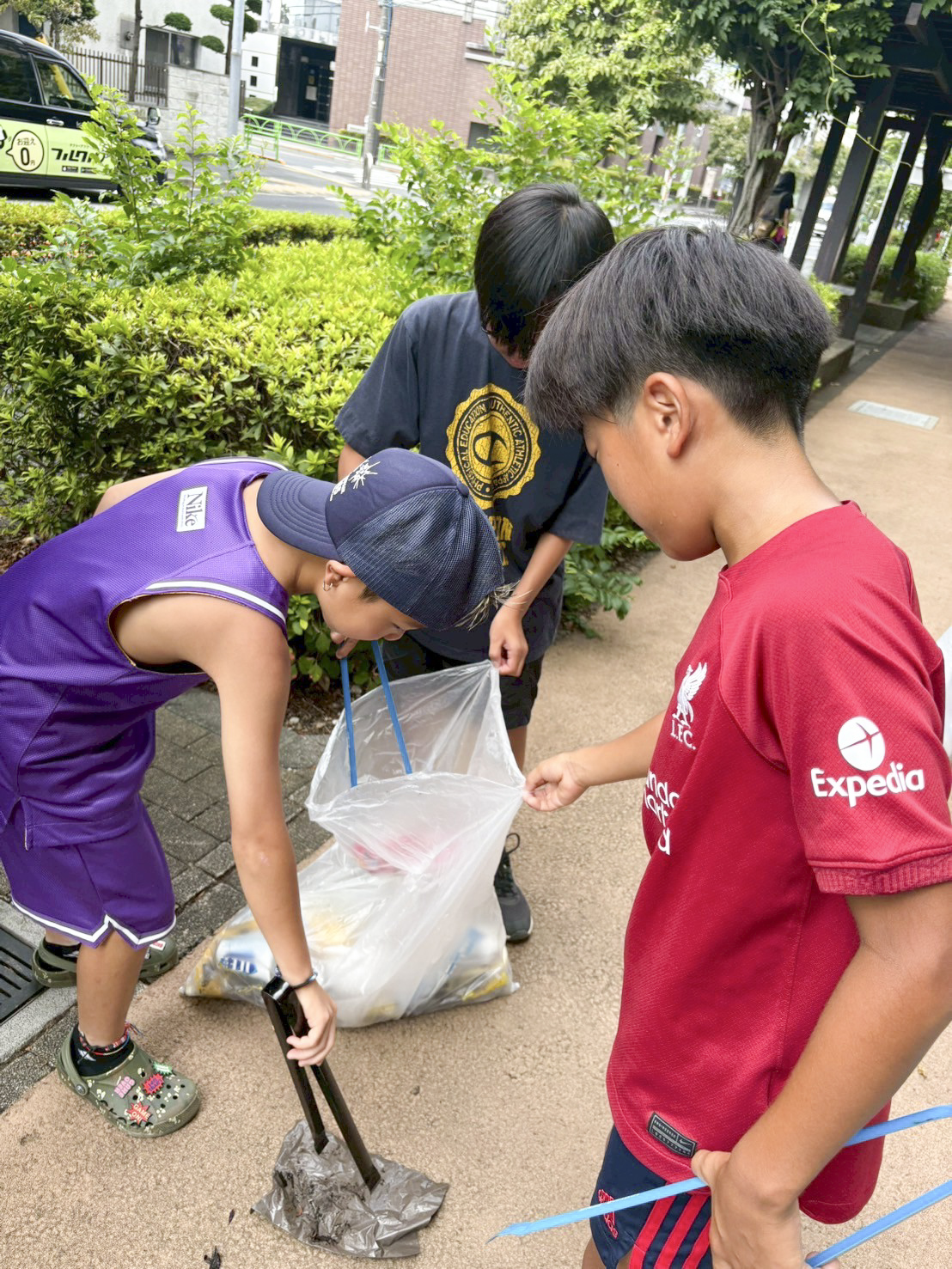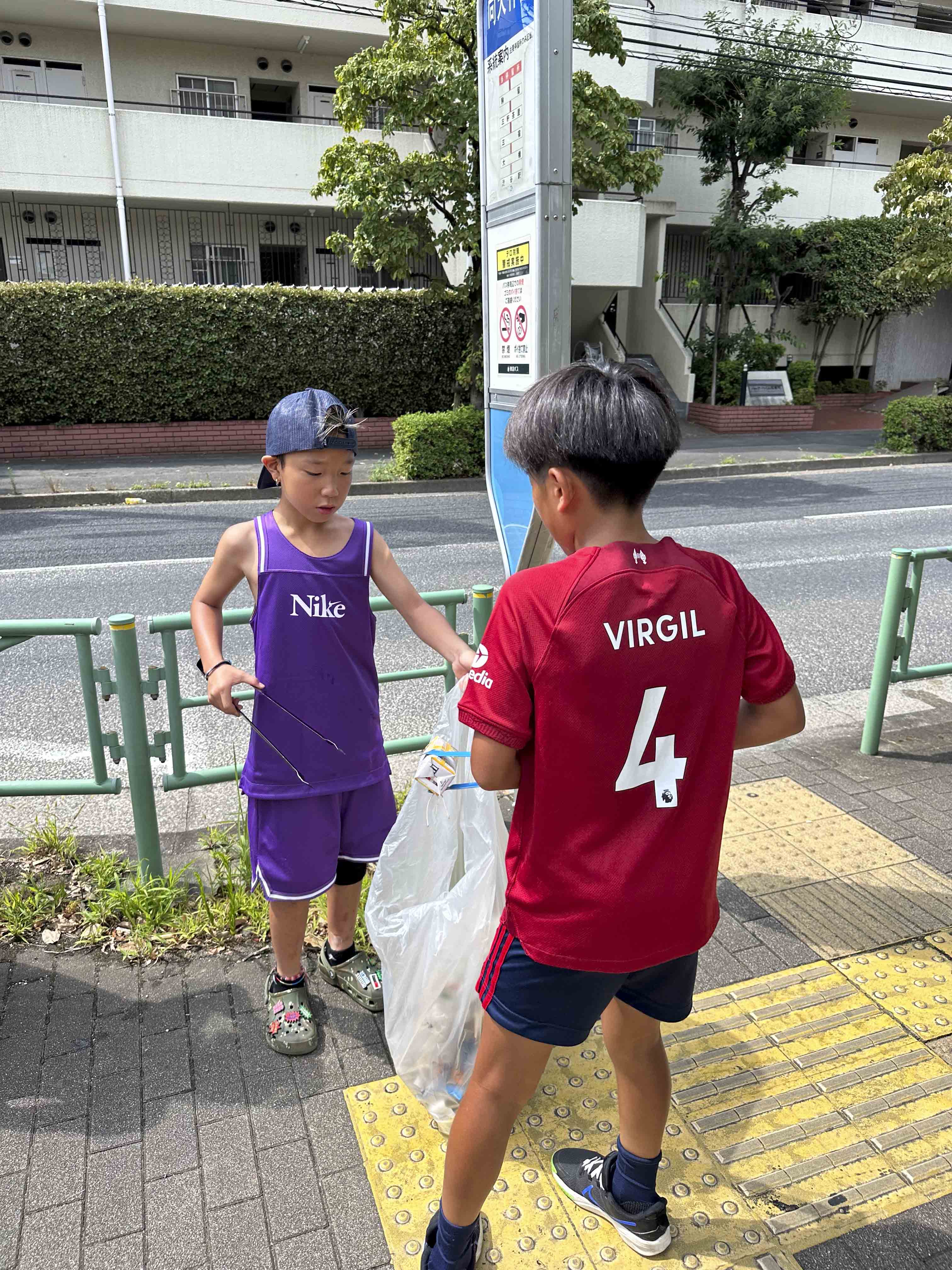 あまり長時間のゴミ拾いもこの炎天下では避けた方が良いので、大物から拾ってもらうようにしました。