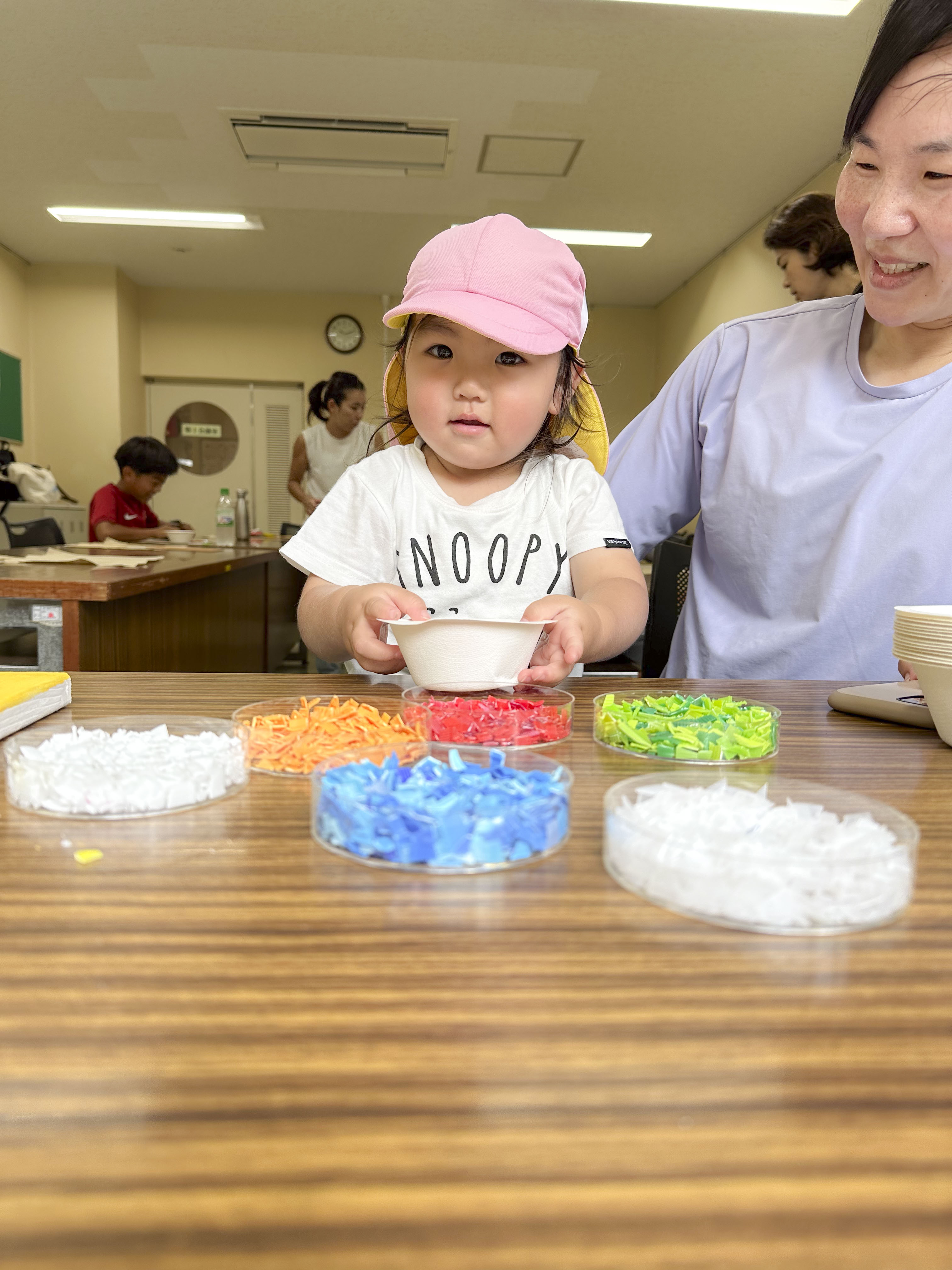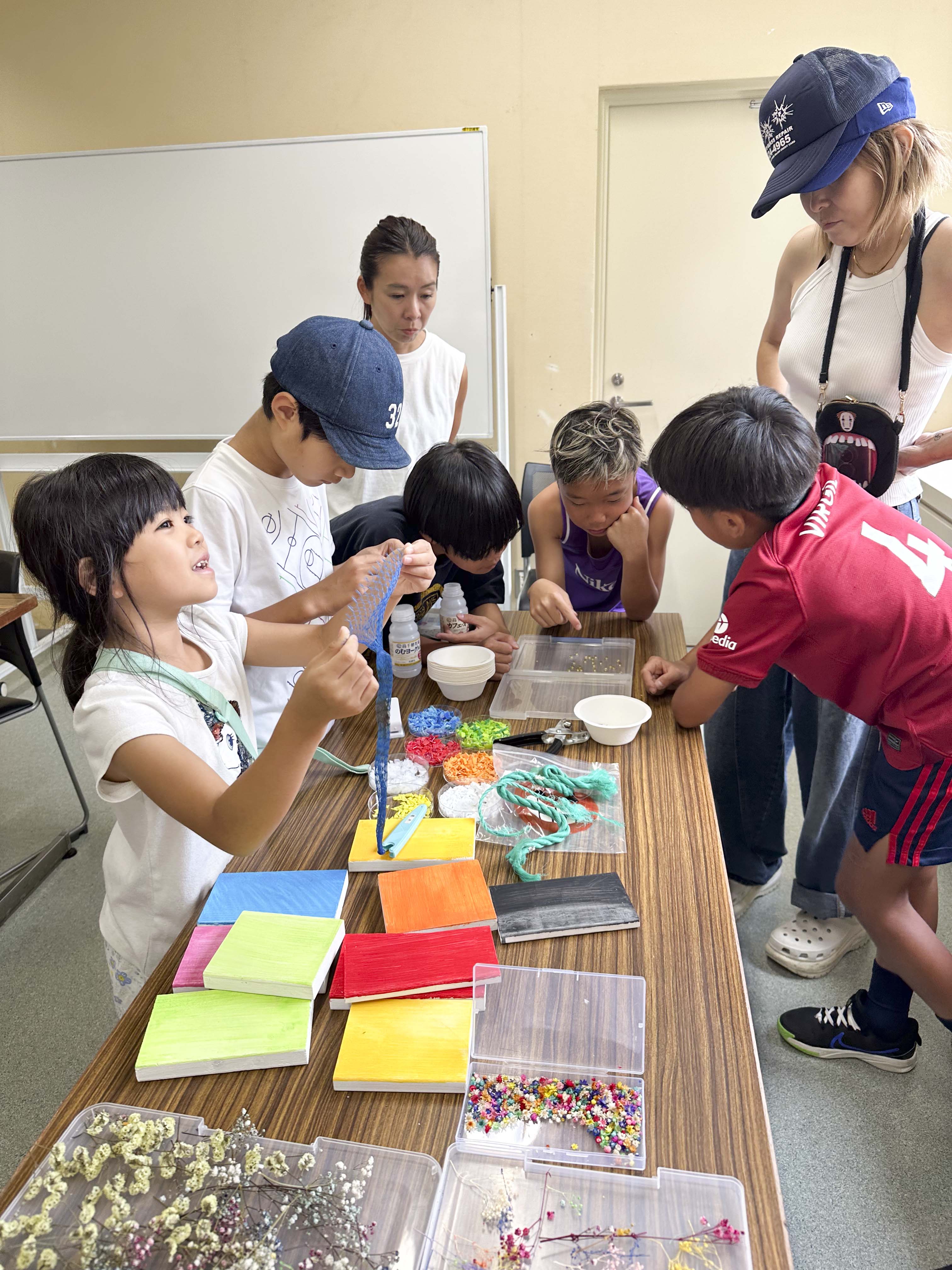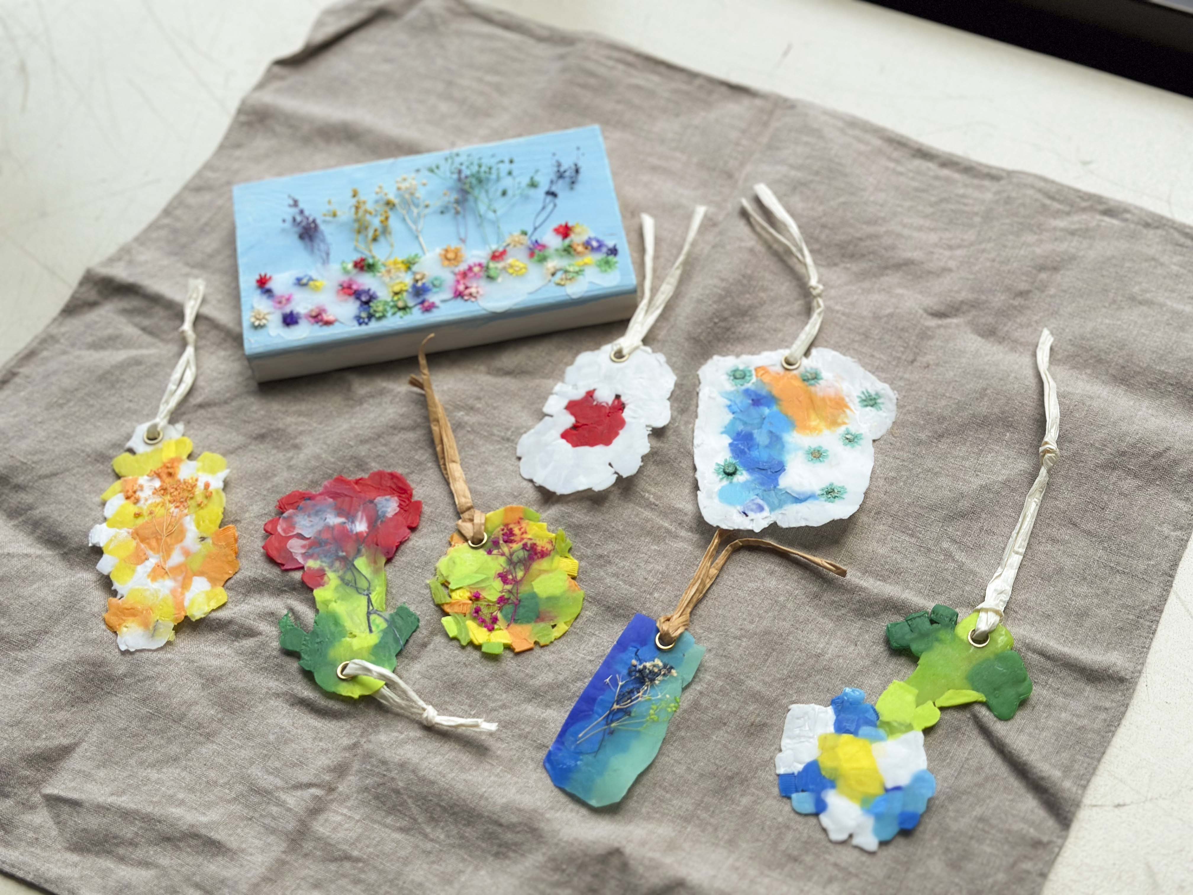 ゴミ拾いの後は、夏休みの自由研究にもなる?アップサイクルのしおり作りをしました。