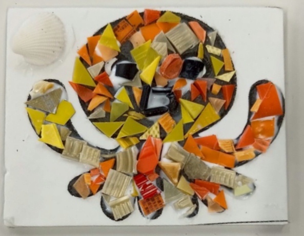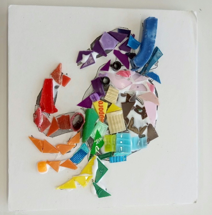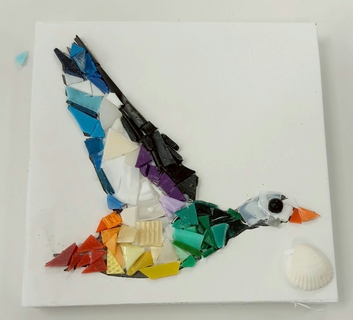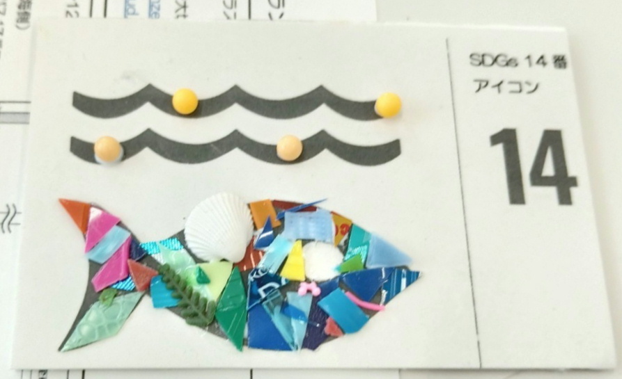 クリーンアップ後は、拾ったマイクロプラスティクを使って、アートやストラップ作りを愉しみました。