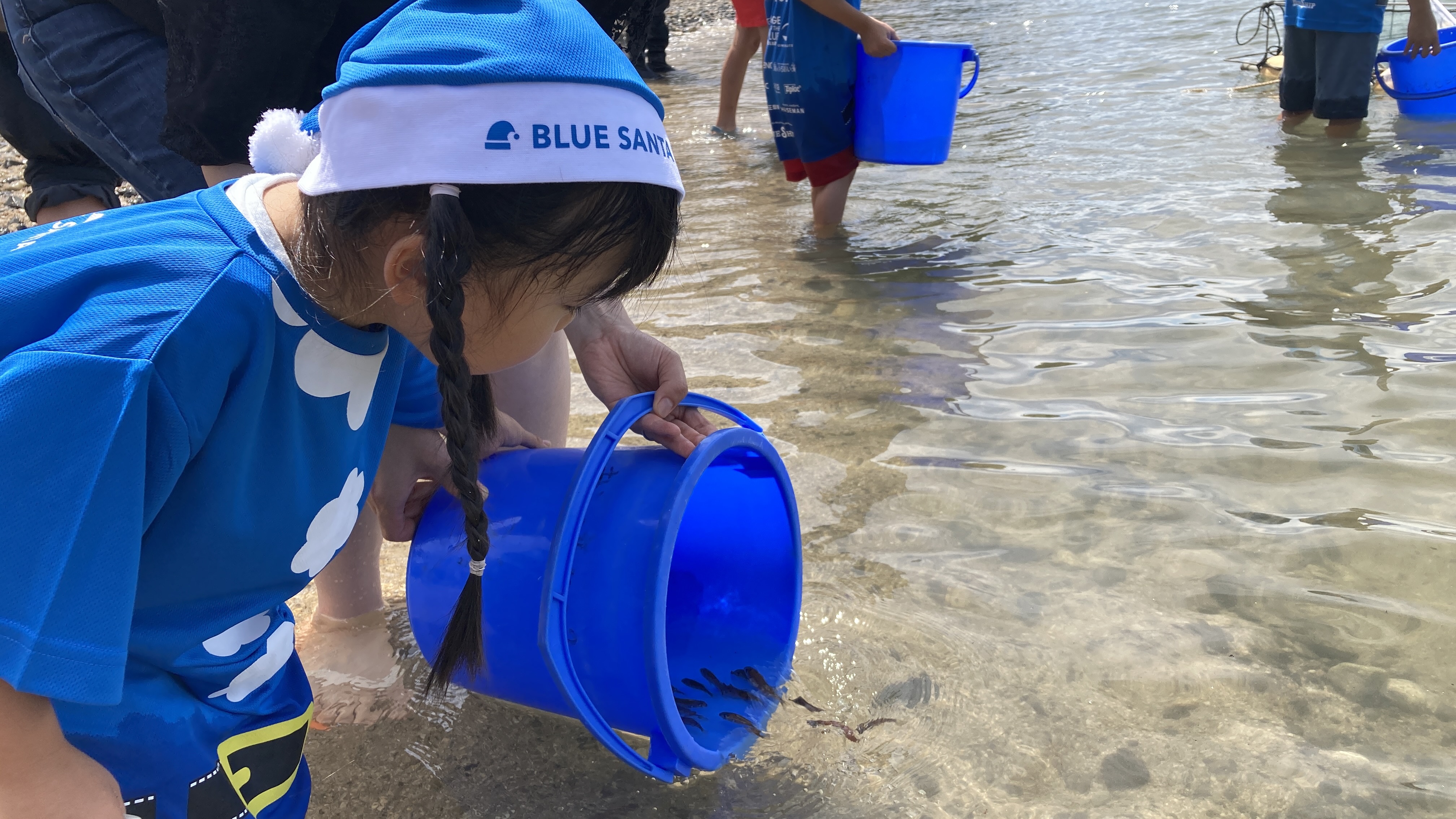 戦士たちは、水産物に恵まれた豊かな海を願い「マダイ」を放流しました。