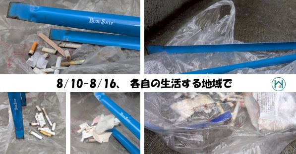 8/10(日)~8/16(土)を活動期間として、参加者それぞれの住む地域のゴミ拾いを実施しました。