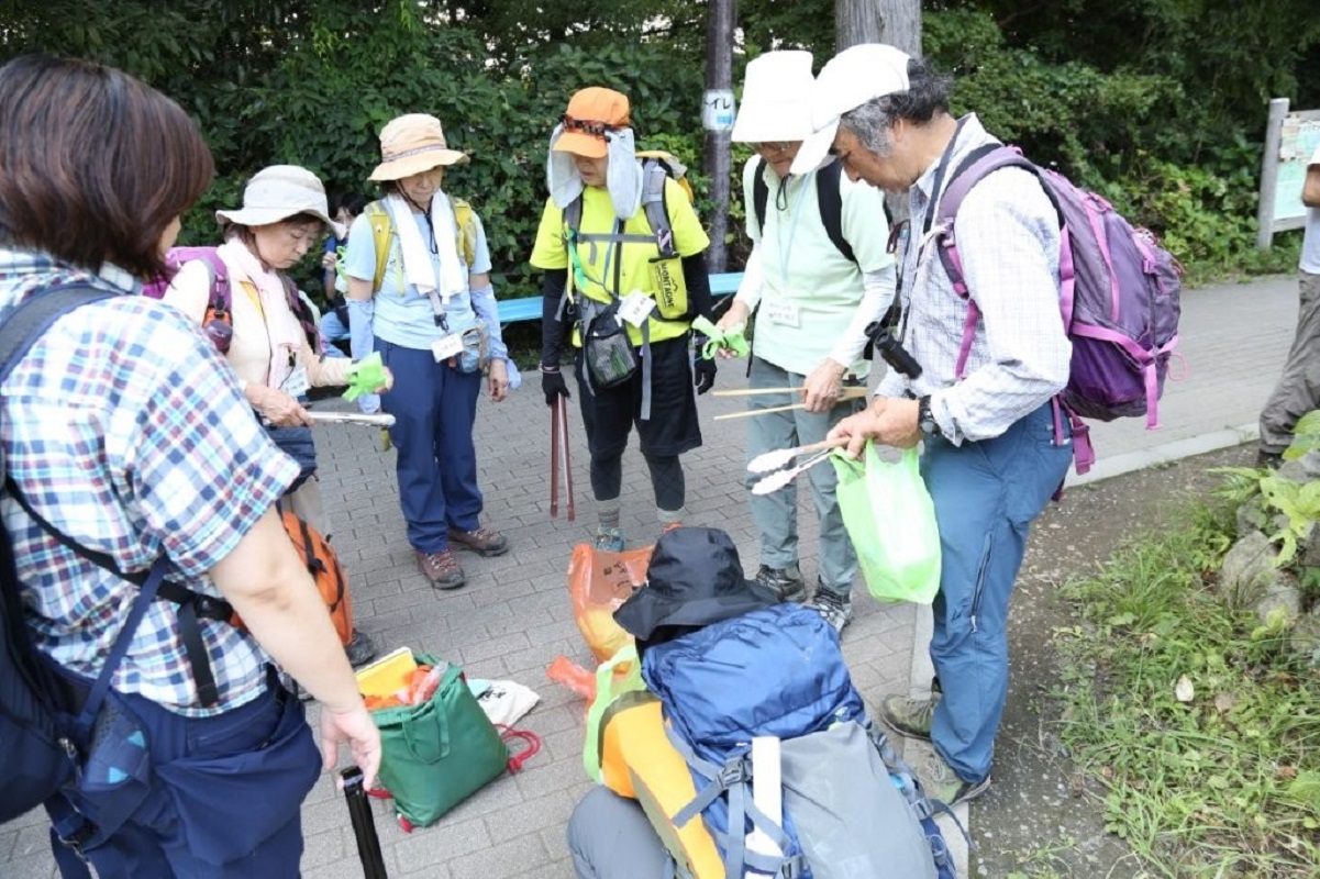 秋の気配が漂う台風一過の青空の元、599ミュージアム隣の高尾森林ふれあい推進センターに集合して開会式の後、琵琶滝を経由して谷側沿いの6号路を通って高尾山に登りました。途中、フジカンゾウ、シモバシラ、ヤブラン、ヤマホトトギスなど秋の草花を観察しました。昼食後から高尾山頂、下りの1号路に落ちているゴミを拾いました。