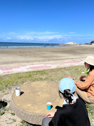 終ってから、海の入って遊んで、海を眺めながらお茶飲んで