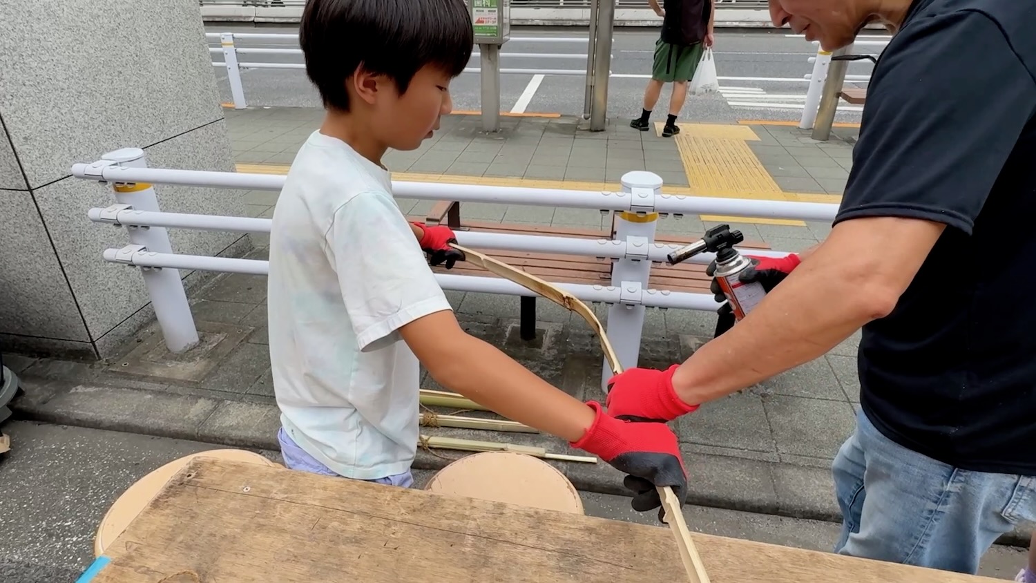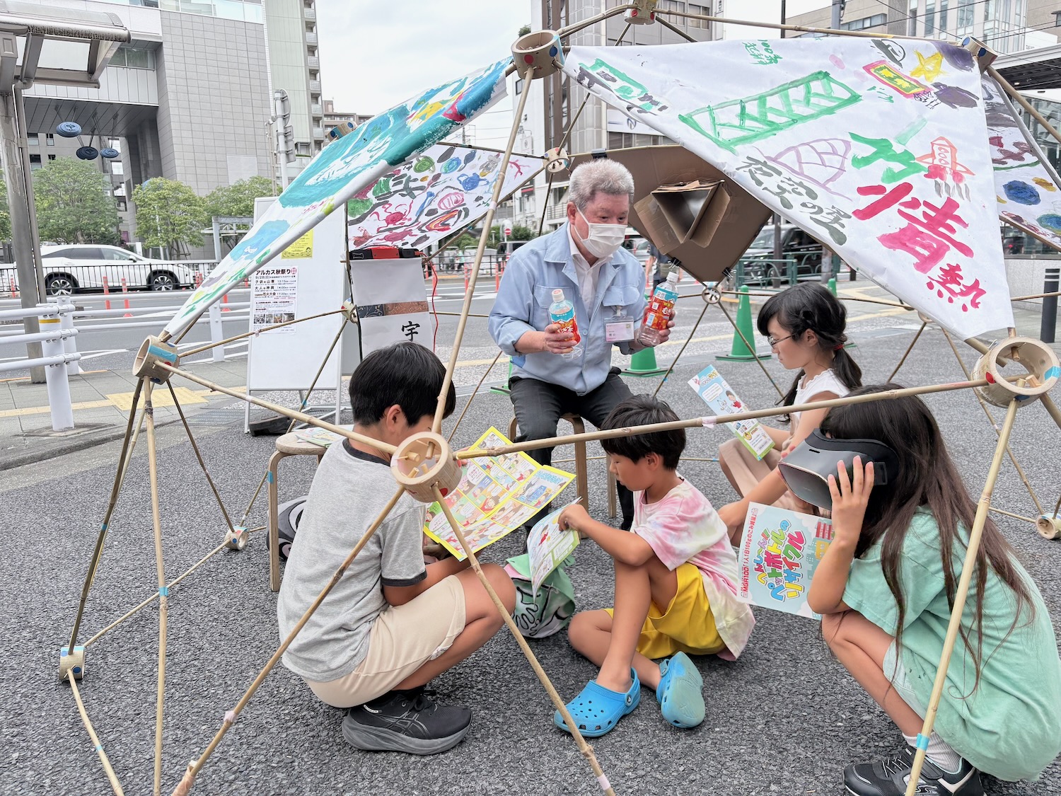 またクリーンアップ活動をするだけではなく、目黒区産の竹を使ってドーム型の家を製作したり、ゴミ拾い用のトングを作ったりしました。