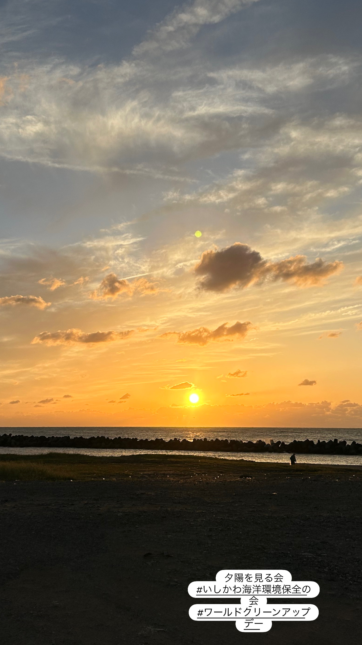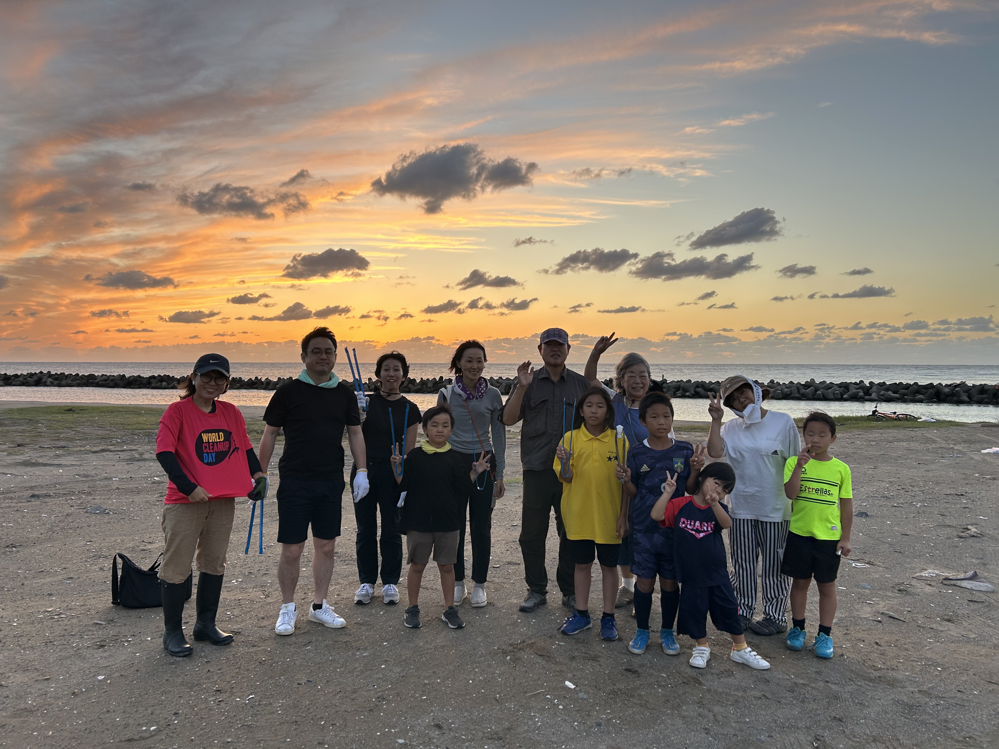 当初国際デーの9月20日に予定しておりましたが、雷雨の予報が出たため、9月21日に変更しました。いつも海岸清掃プラス何かお楽しみがあると良いなと思っており、お昼間はまだ暑いこともあり、今回は夕陽を参加者で鑑賞することにしました。ペットボトルごみが非常に多く、15分ほどで約320本回収しました。今回は子どもさんも多く、また参加したいと言ってくれて嬉しかったです。
