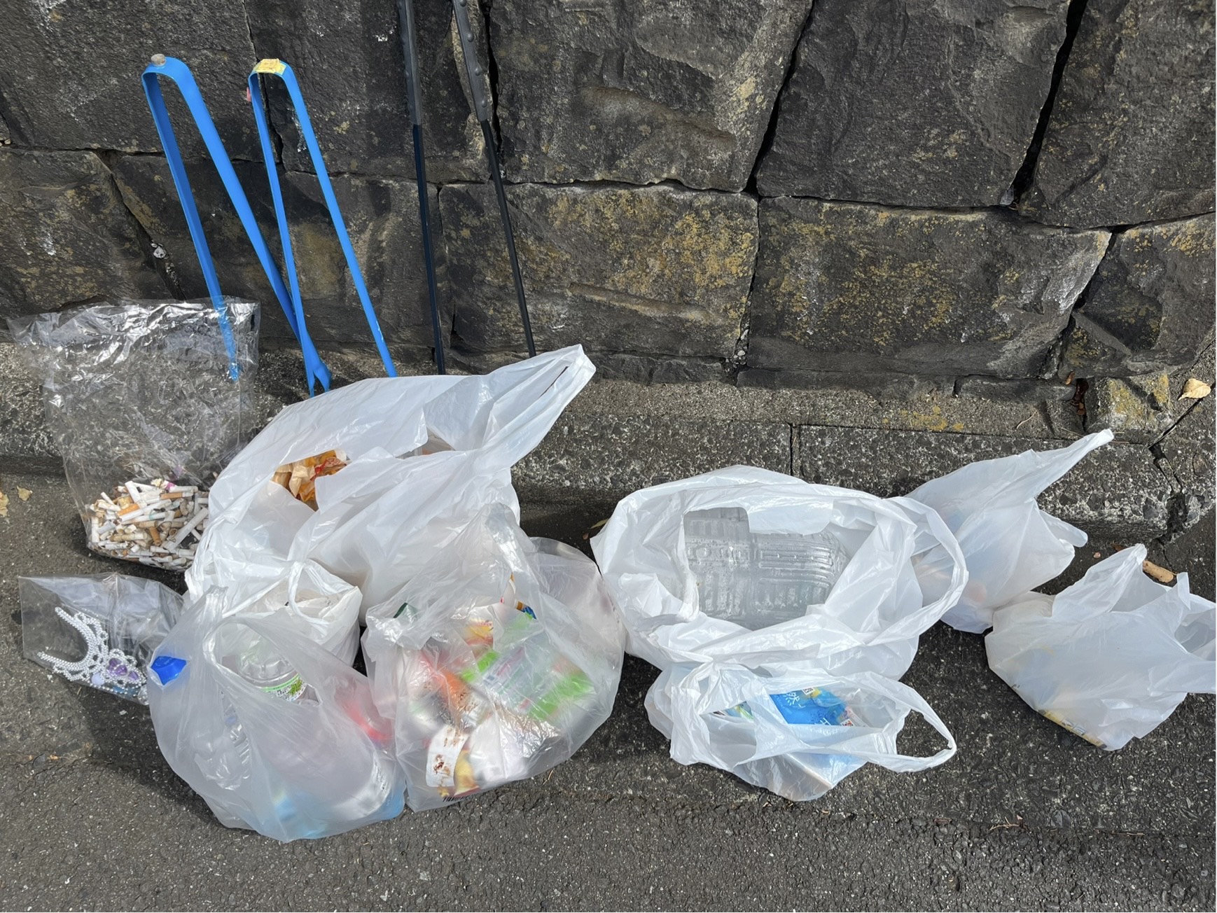 そこで先ほどの女性に再び。なんとトングとゴミ袋を買って戻ってきてくれたとのこと。同志が増えました。