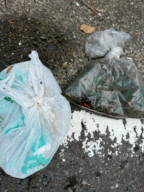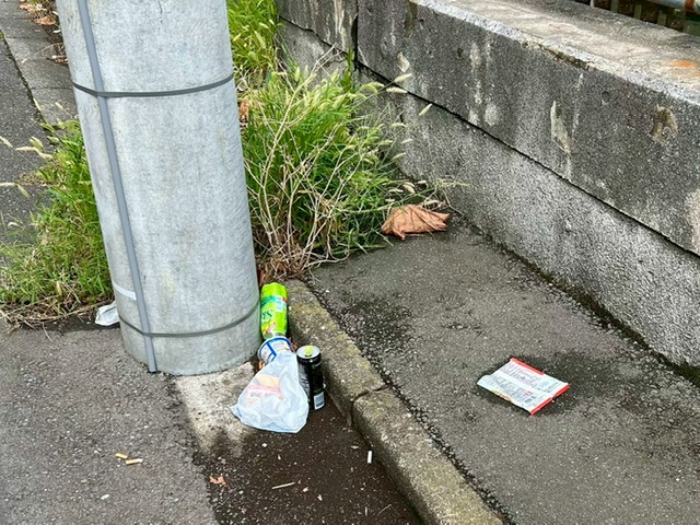ここ最近のポイ捨て状況がとても酷く、道路脇にタバコの箱と吸殻だけを袋にまとめたものが