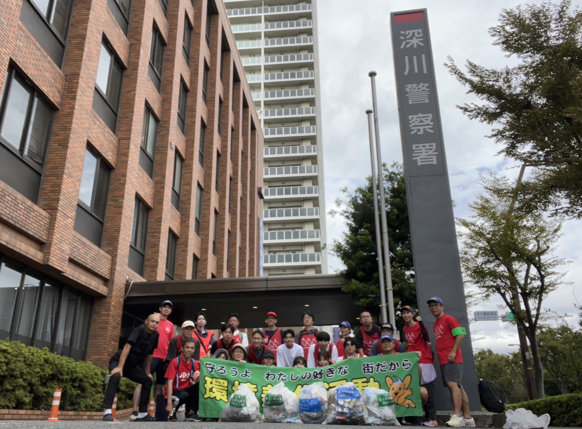 深川警察署生活安全課防犯係にご協力いただき無事に活動することができました。「思ったよりゴミが多かった」「煙草のポイ捨てが多い」「朝早く起きていい汗をかくことができた」等の感想を聞かせていただきました。
