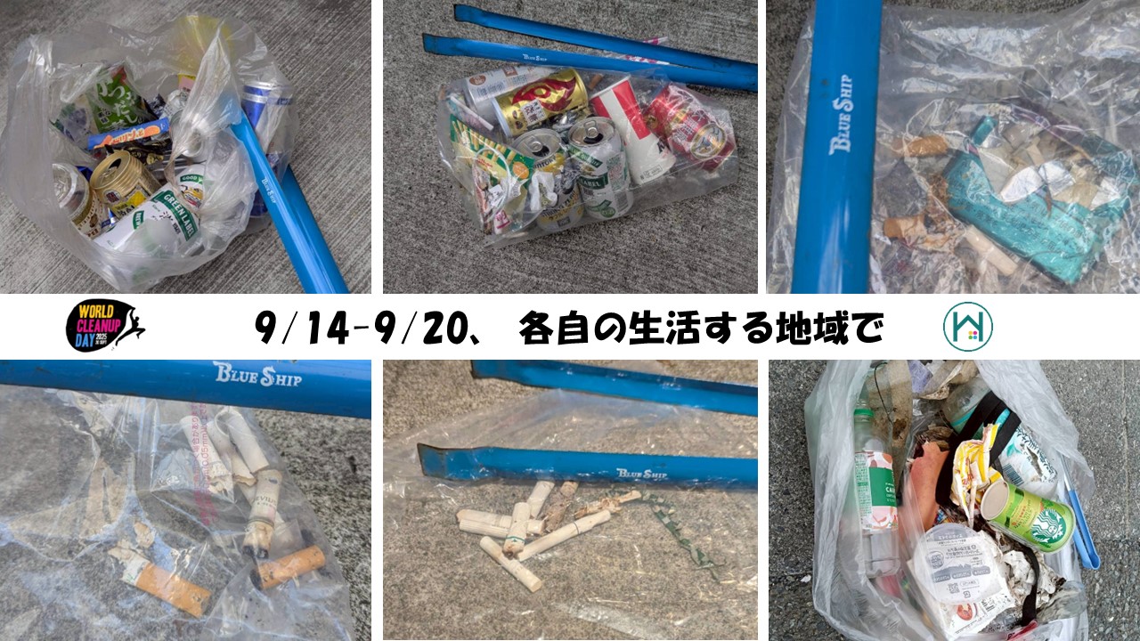 9/14(日)~9/20(土)を活動期間として、参加者それぞれの住む地域のゴミ拾いを実施しました。