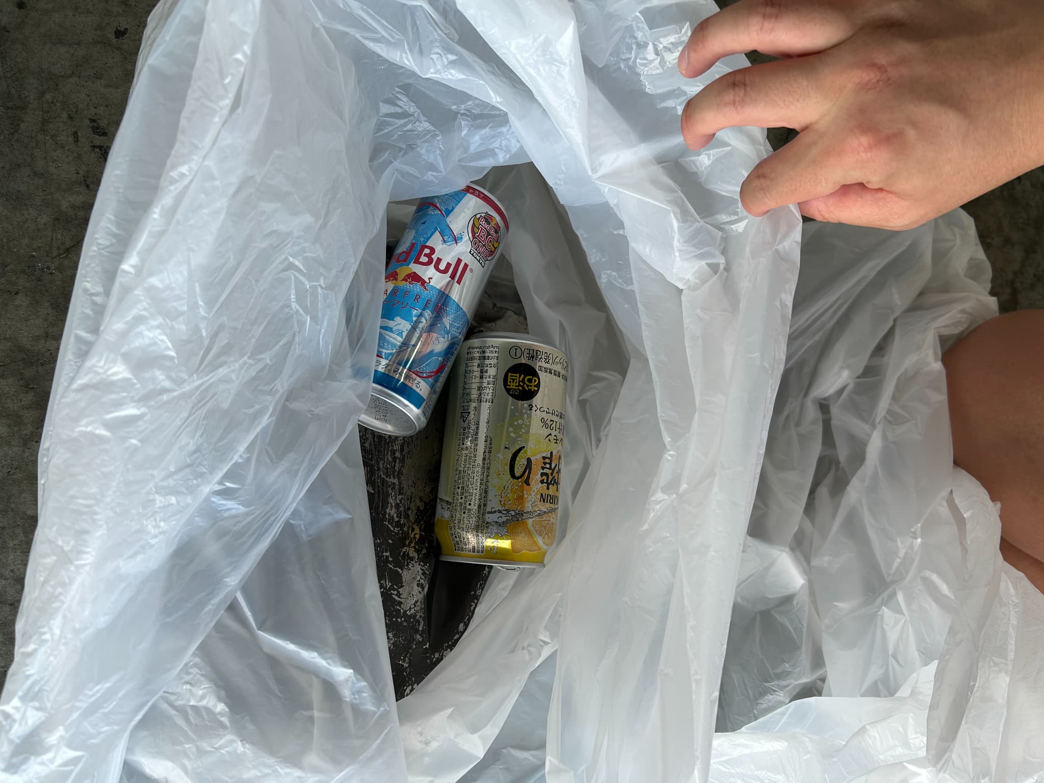 エキスポエリア外の公道付近は少なかったですが、館からスタジアムまでのルートは人通りも増える分、投棄されたごみの量も多かったです。