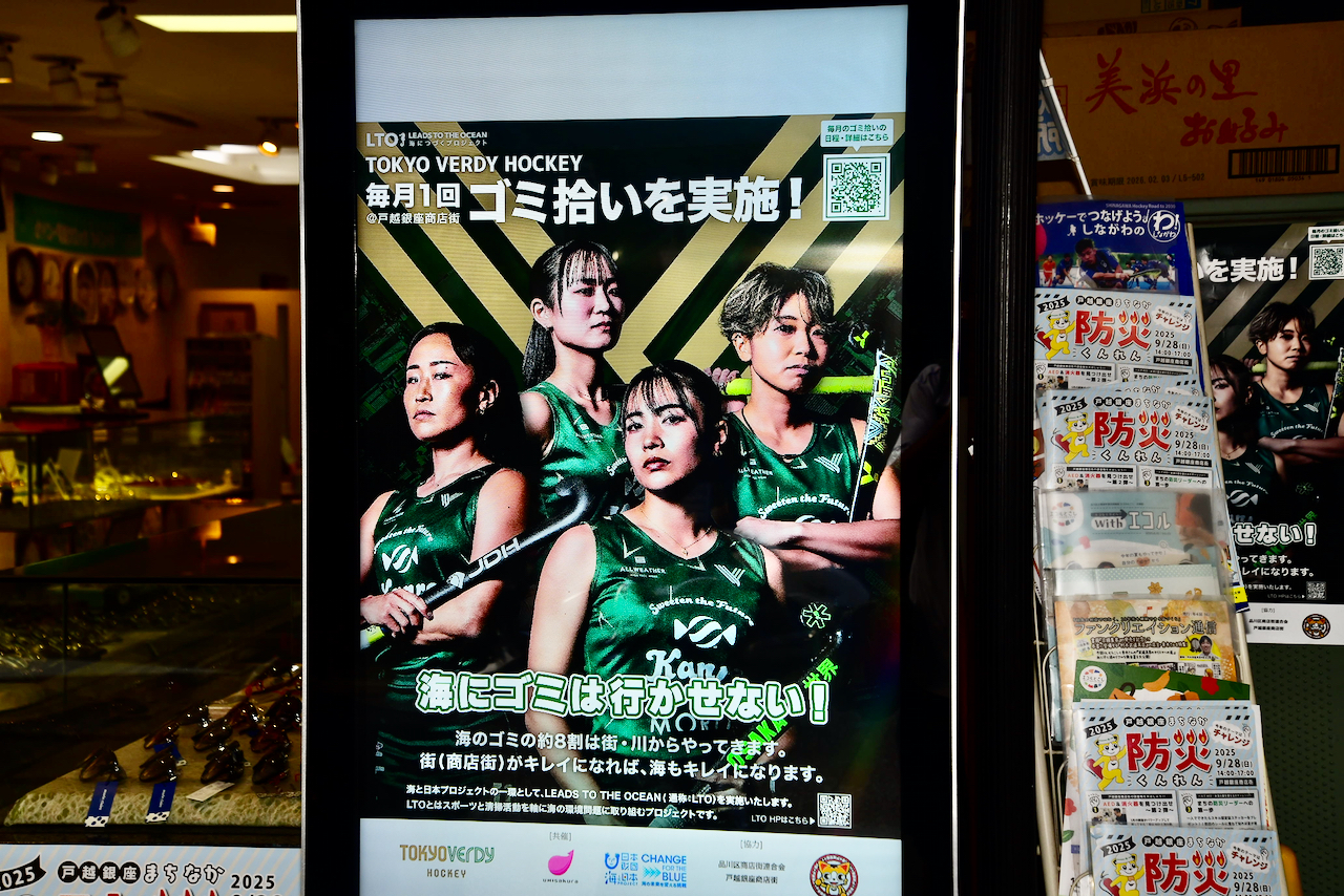 海さくらさんと東京ヴェルディ女子ホッケーチームで、戸越銀座商店街にてLTOゴミ拾いを行いました。