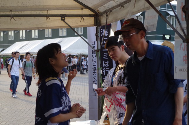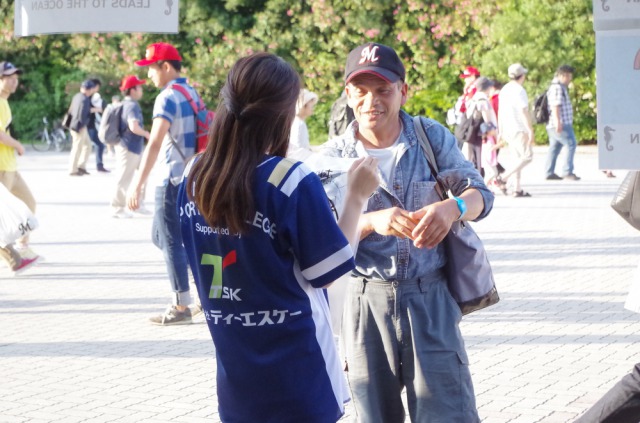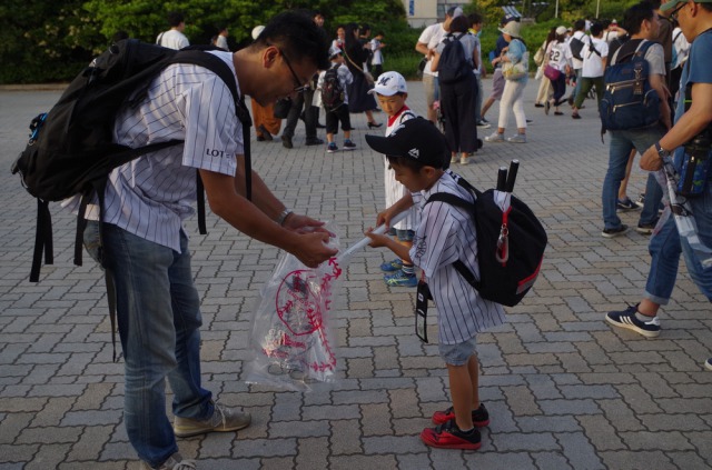 そんな晴れ晴れしい試合の後は第4回「LEADS TO THE OCEAN~海につづくプロジェクト」を実施 しました! 穏やかな天気の中、スタートした第4回目は42名の方と一緒に球場のゴミを拾いました。4回目 にして既に3つめのスタンプを獲得する方もいらっしゃいました!