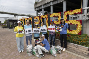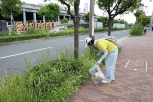 今回は、閉幕まであと3週間となった大阪・関西万博へ向かう大勢の人たちが利用する、桜島駅シャトルバス乗り場周辺のゴミ拾いをしました。