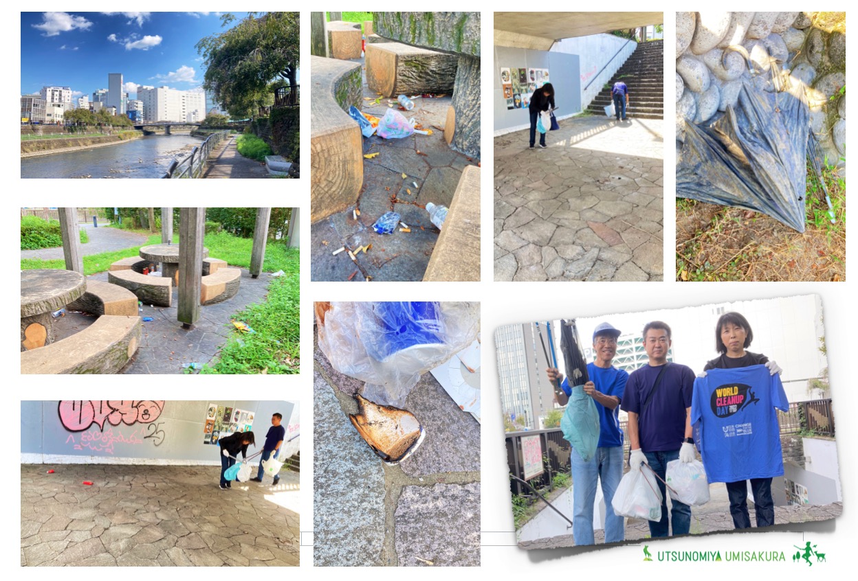 ひととおり、ゴミ拾いを終えて宮の橋近辺に戻るときでした。