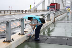 舞洲と夢洲をつなぐ夢舞大橋を渡って、万博会場までのゴミ拾いをしました。