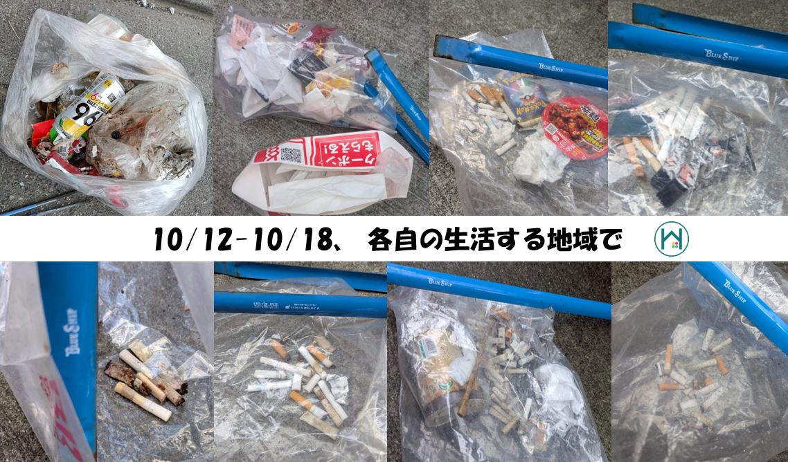 10/12(日)~10/18(土)を活動期間として、参加者それぞれの住む地域のゴミ拾いを実施しました。